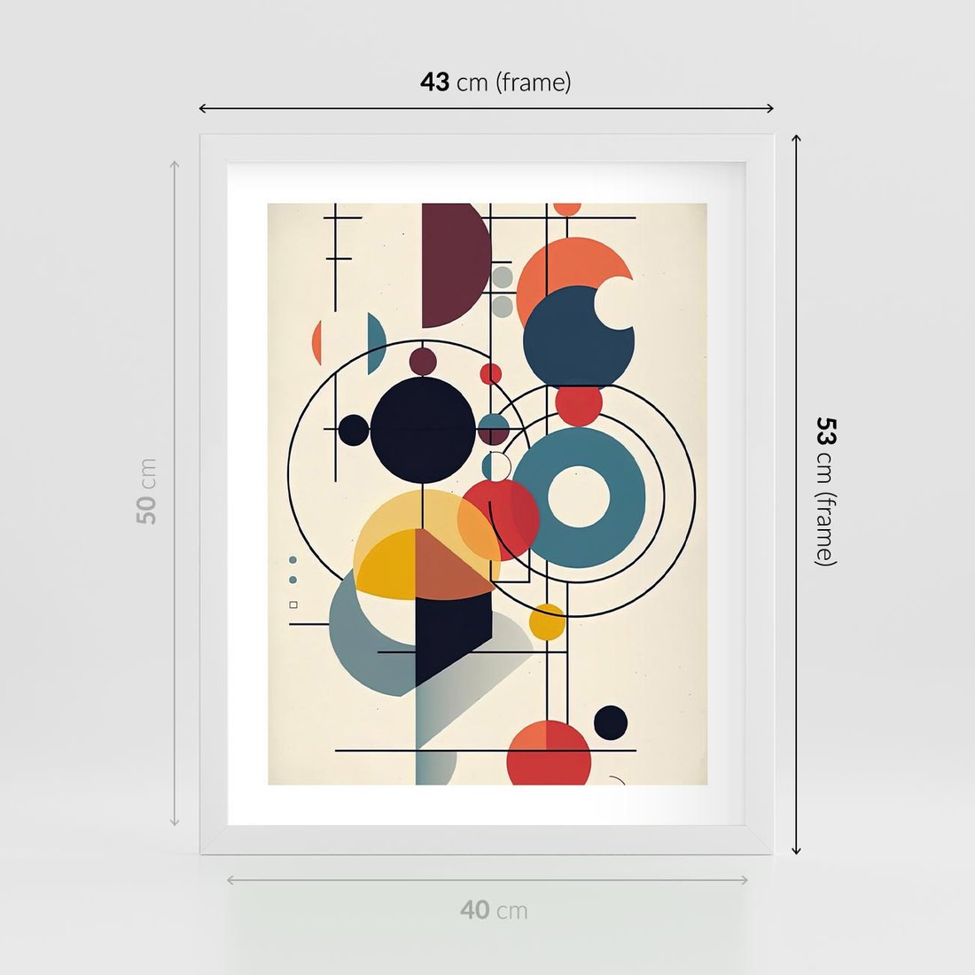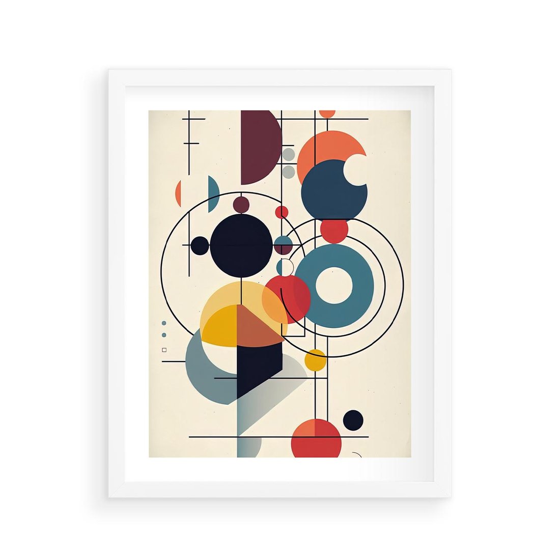 Plakat w ramie 40x50 - Rozbijające Barwne Granice - abstrakcyjna geometryczna kompozycja, koła linie - rama biała