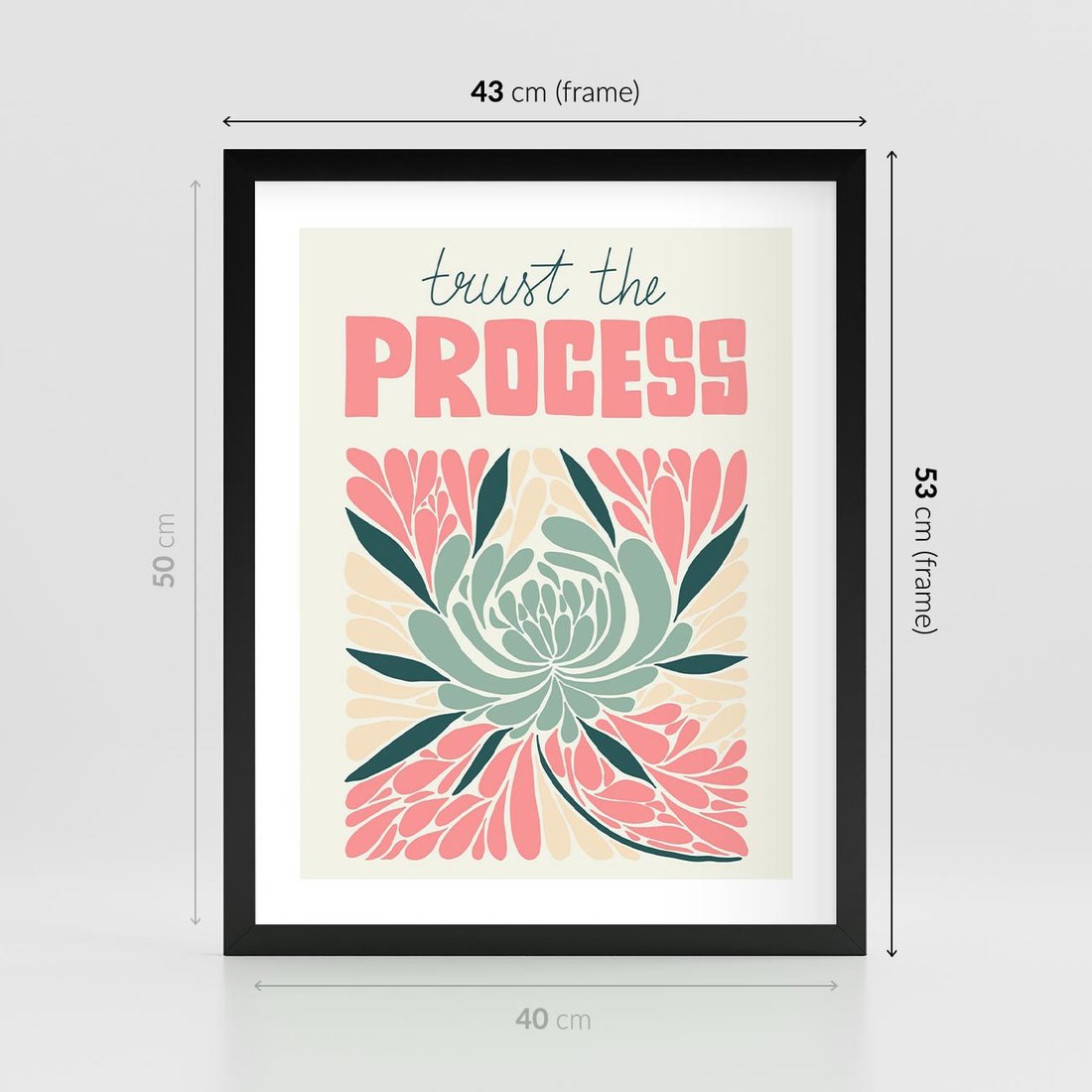 Plakat w ramie 40x50 - Rozbijające Barwy - abstrakcyjny pastelowy kwiat, wyrazista typografia - rama czarna