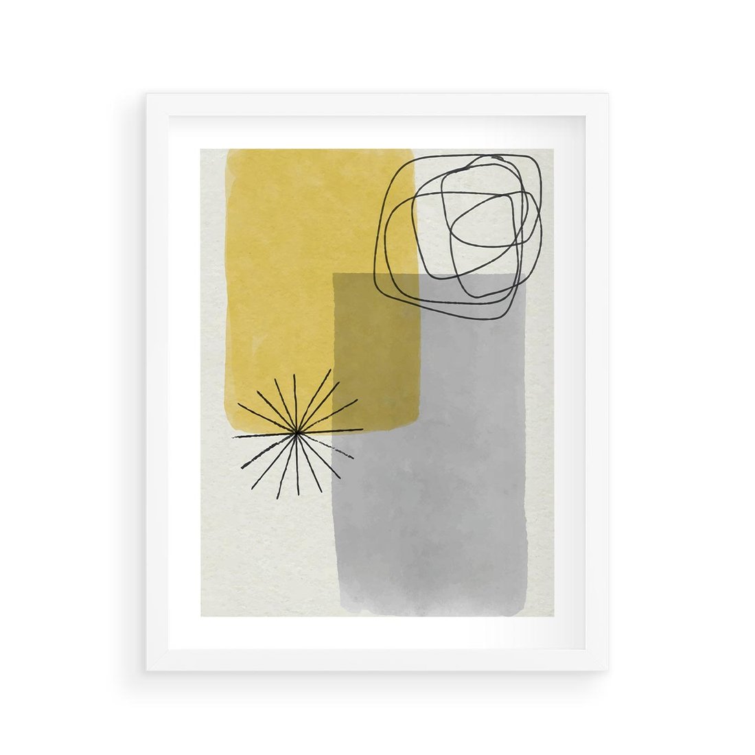 Odkryj abstrakcję w postaci akwarelowych plam w kontrastujących odcieniach czerni i żółci. To dynamiczne połączenie kolorów i form tworzy ekscytującą kompozycję, która przyciąga uwagę i pobudza zmysły.