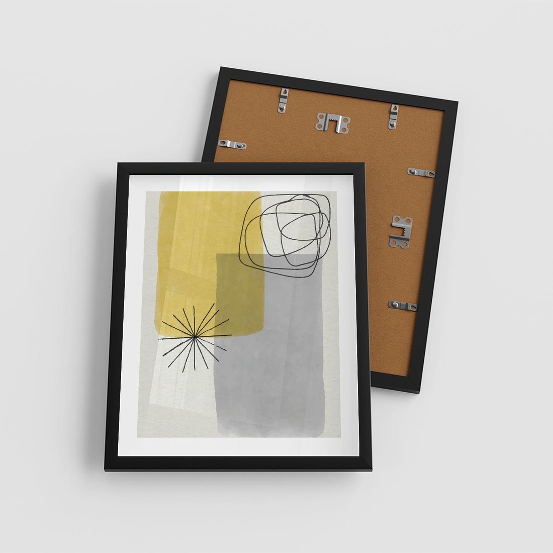 Odkryj abstrakcję w postaci akwarelowych plam w kontrastujących odcieniach czerni i żółci. To dynamiczne połączenie kolorów i form tworzy ekscytującą kompozycję, która przyciąga uwagę i pobudza zmysły.