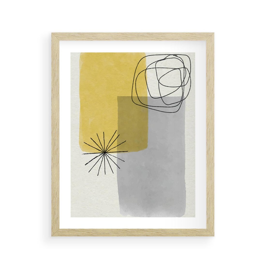 Odkryj abstrakcję w postaci akwarelowych plam w kontrastujących odcieniach czerni i żółci. To dynamiczne połączenie kolorów i form tworzy ekscytującą kompozycję, która przyciąga uwagę i pobudza zmysły.
