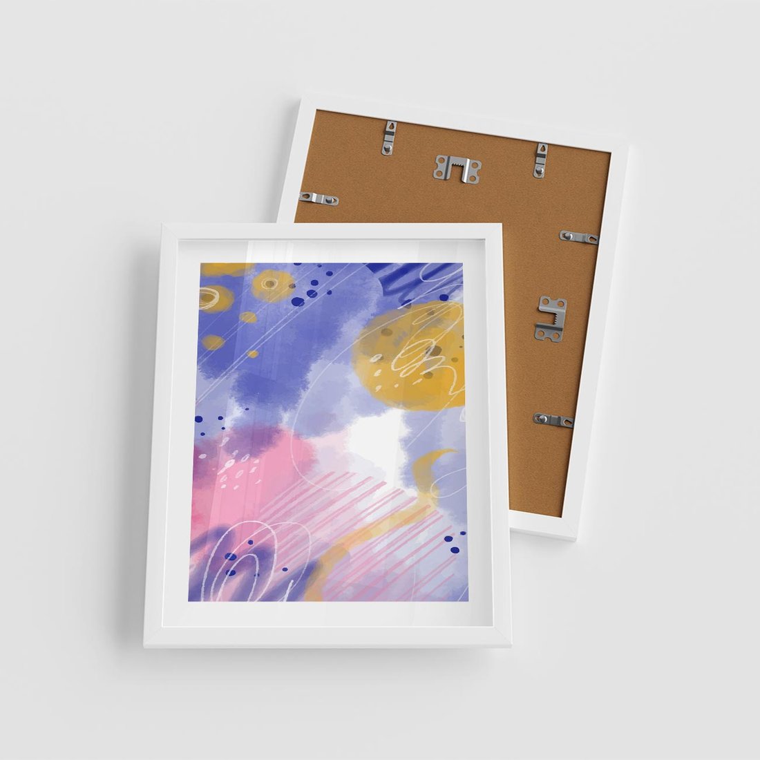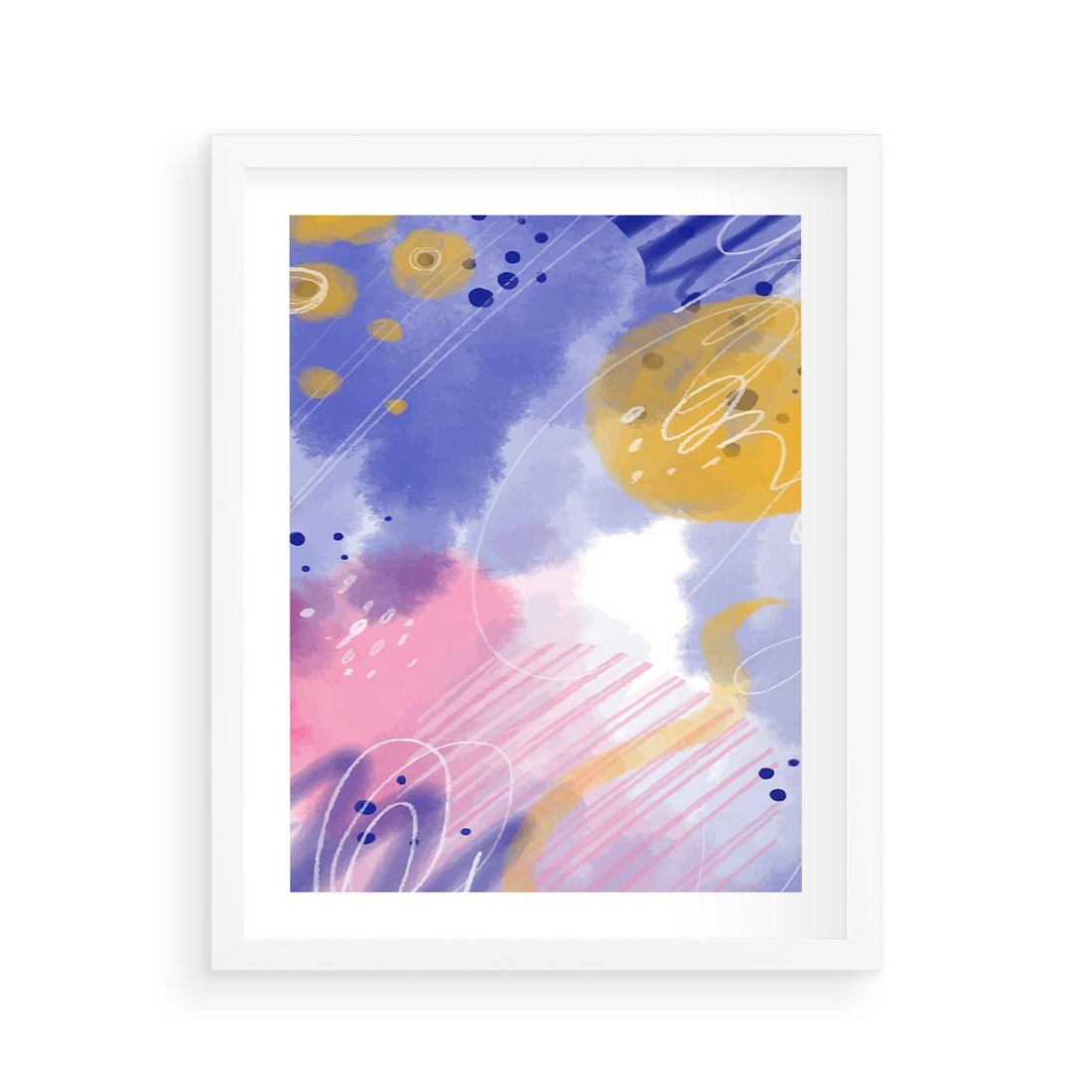 Plakat w ramie 40x50 - Rozbijające Plamy - abstrakcyjny plakat, pastelowe kolory - rama biała