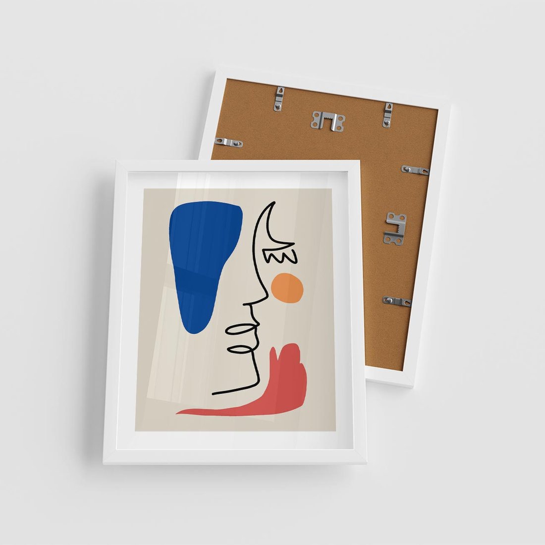 Plakat w ramie 40x50 - Rozbijające Symfonie Form - abstrakcyjny obraz, przypomina twarz - rama biała