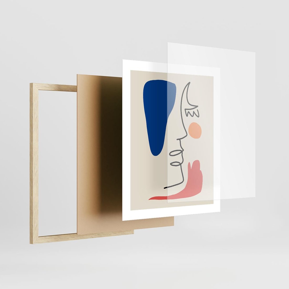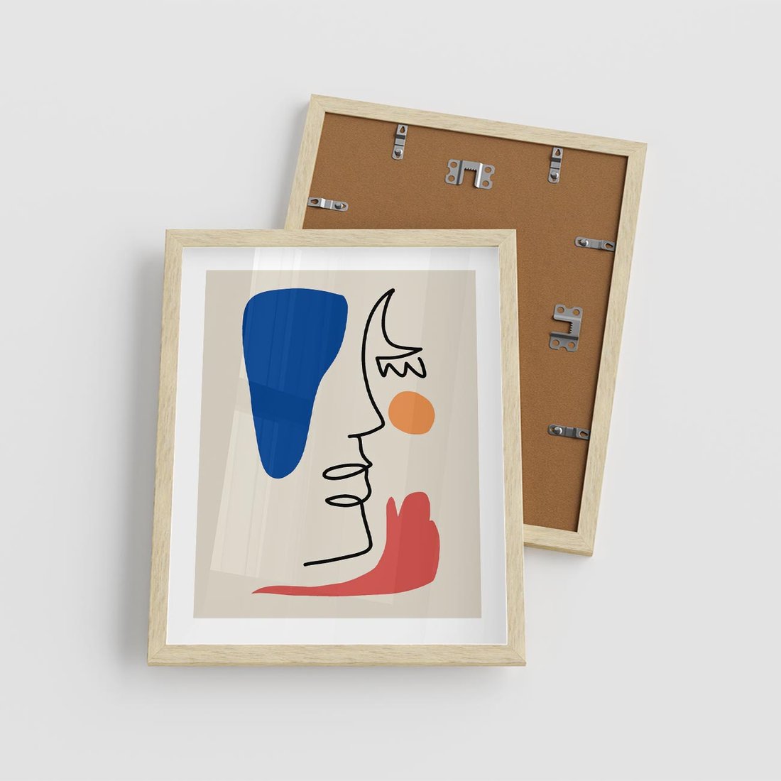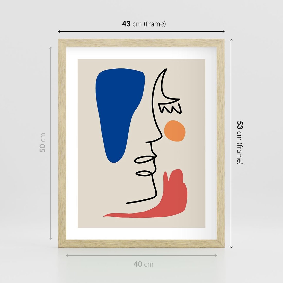 Plakat w ramie 40x50 - Rozbijające Symfonie Form - abstrakcyjny obraz, przypomina twarz - rama drewno
