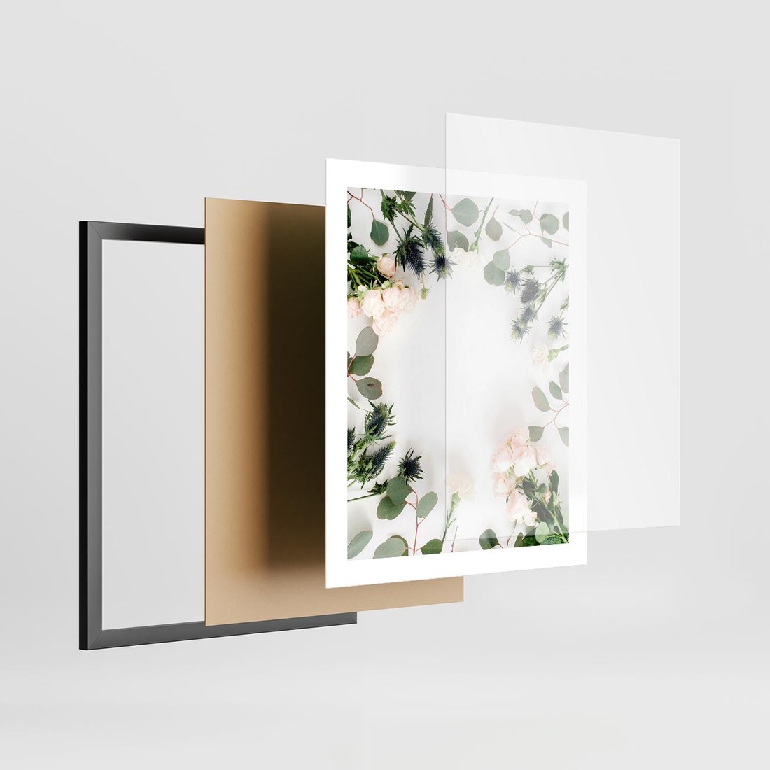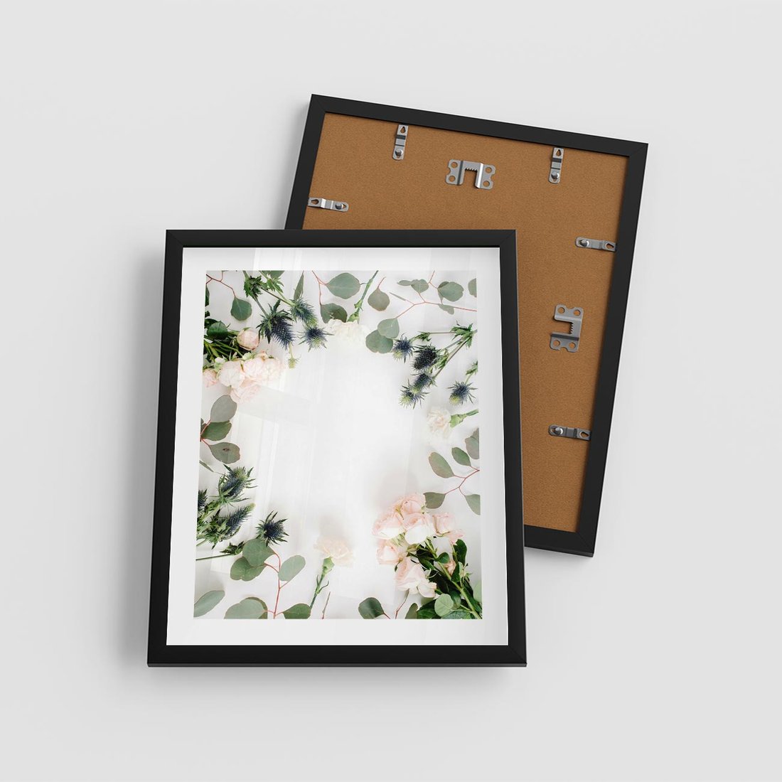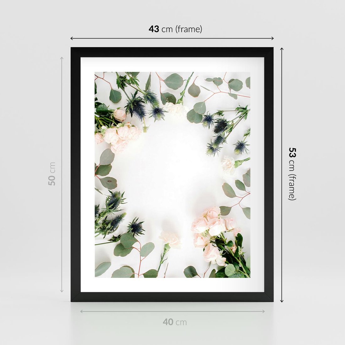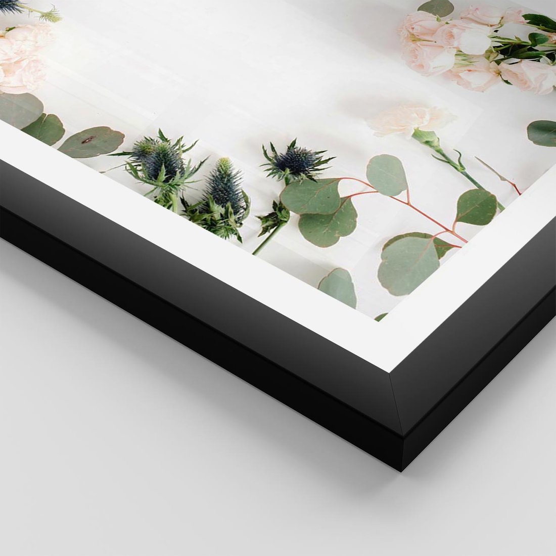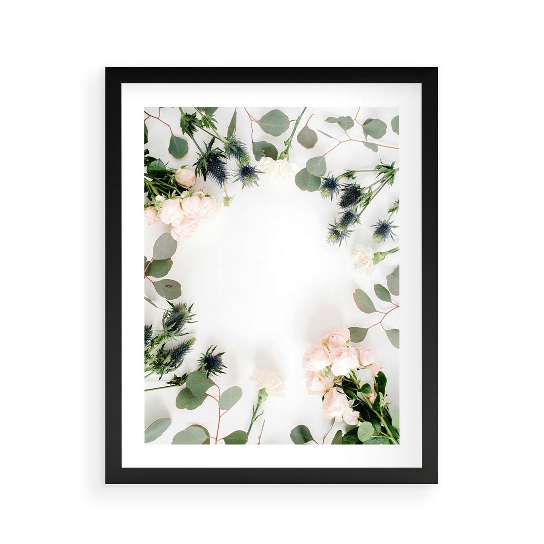 Plakat w ramie 40x50 - Róże i Zielone Liście - kompozycja kwiatowa, róże - rama czarna