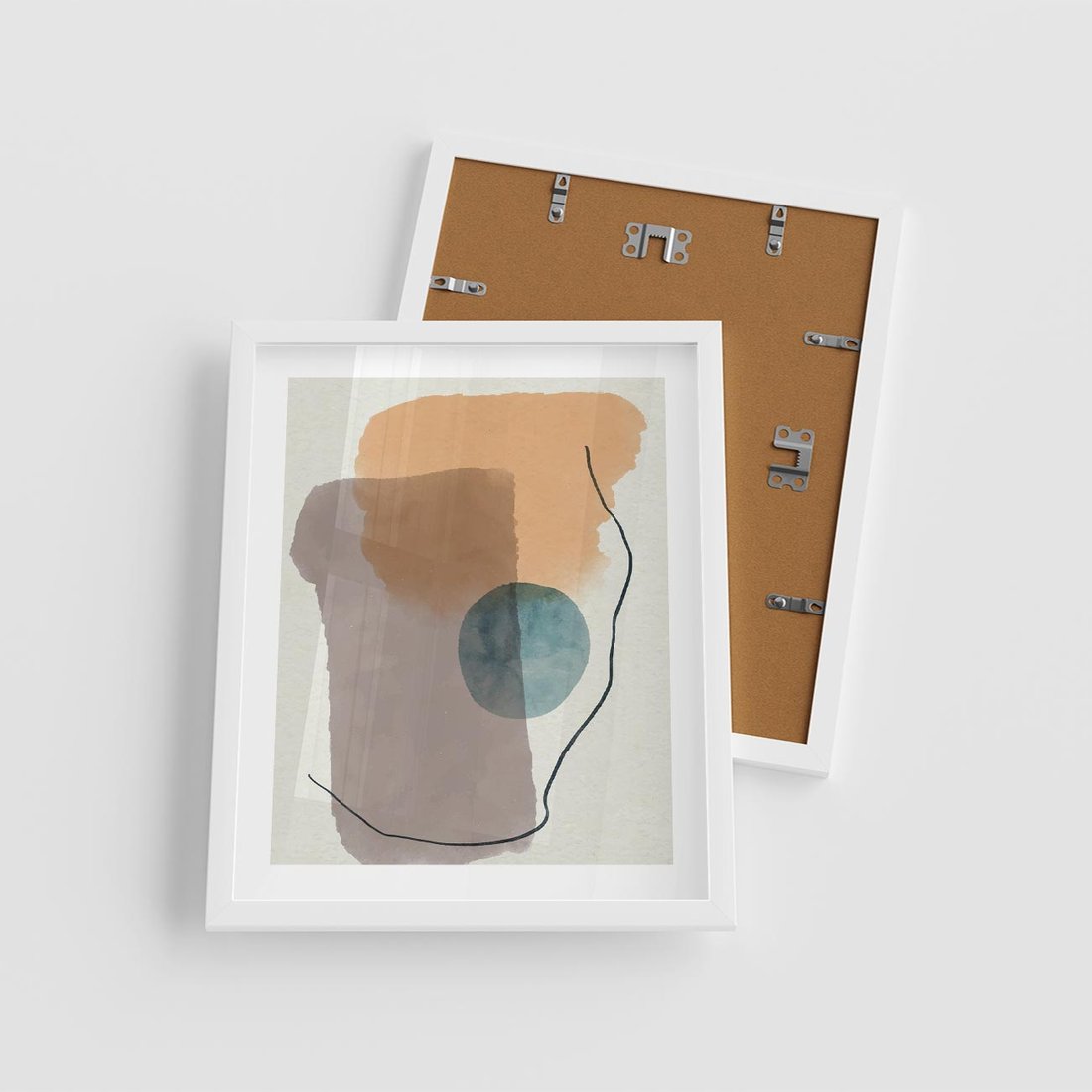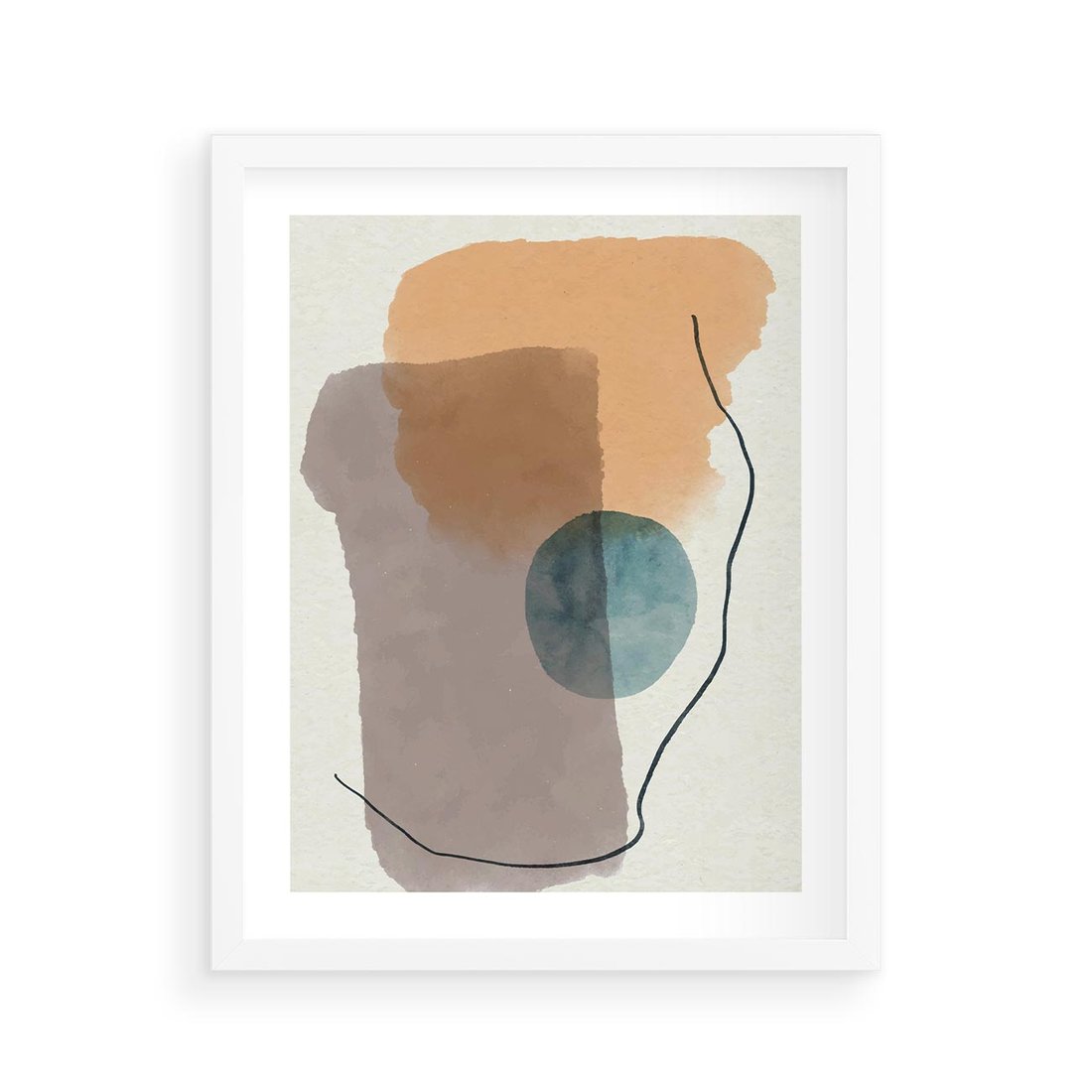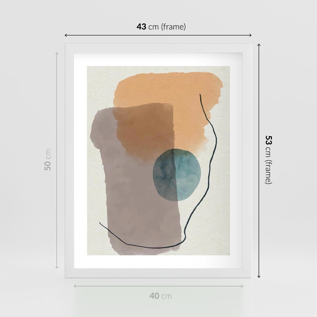 Plakat w ramie 40x50 - Rozkwitająca Akwarelowa Inspiracja - geometryczne elementy, stonowane ziemiste kolory - rama biała