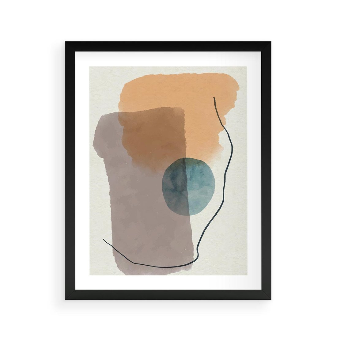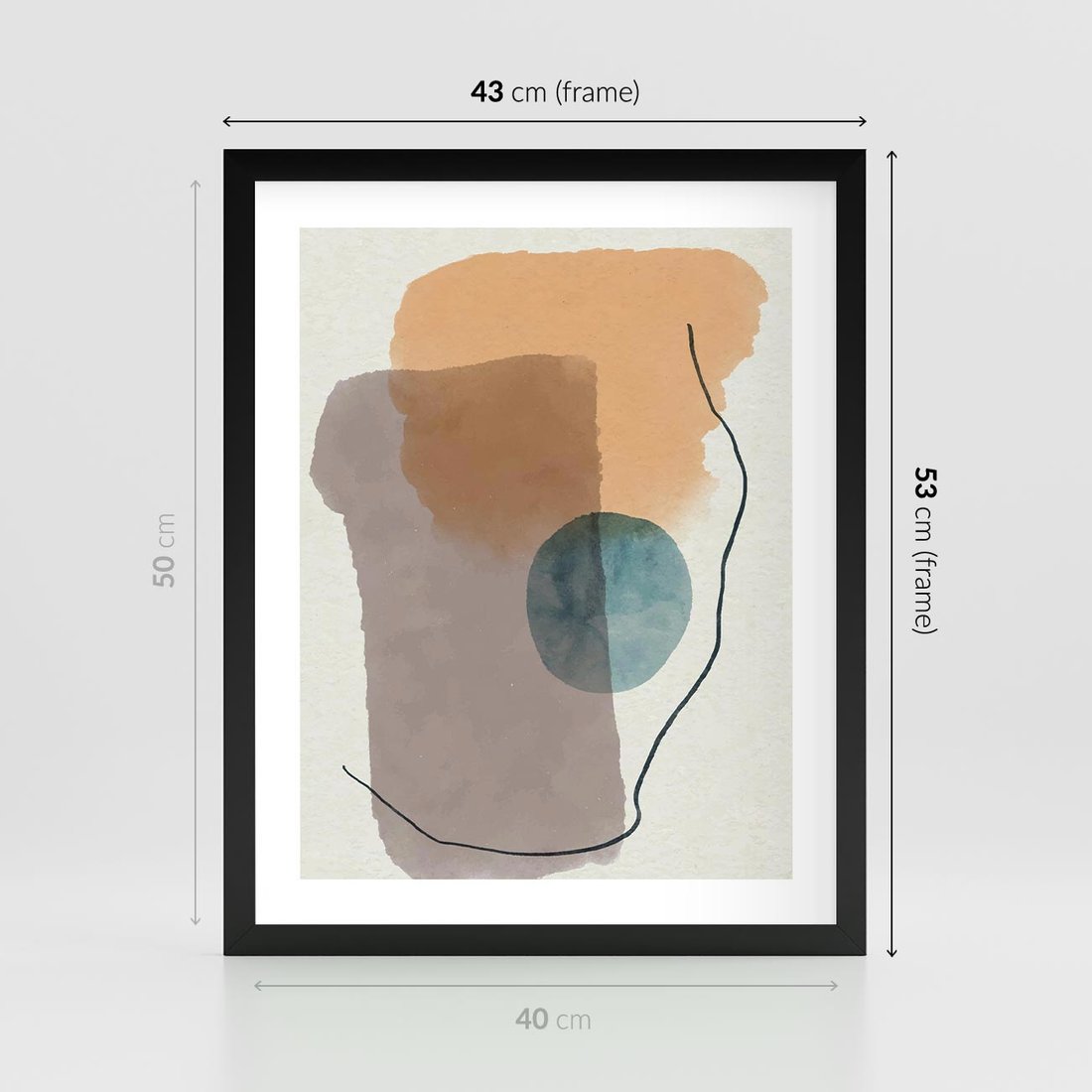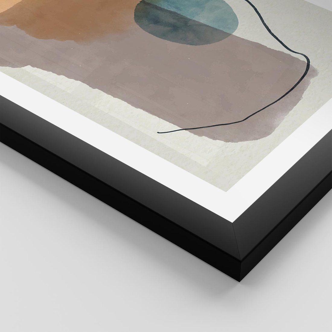 Plakat w ramie 40x50 - Rozkwitająca Akwarelowa Inspiracja - geometryczne elementy, stonowane ziemiste kolory - rama czarna