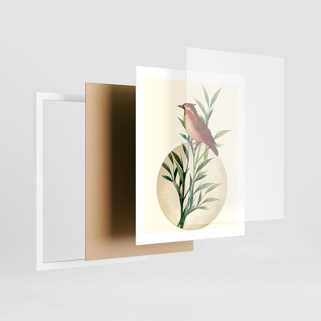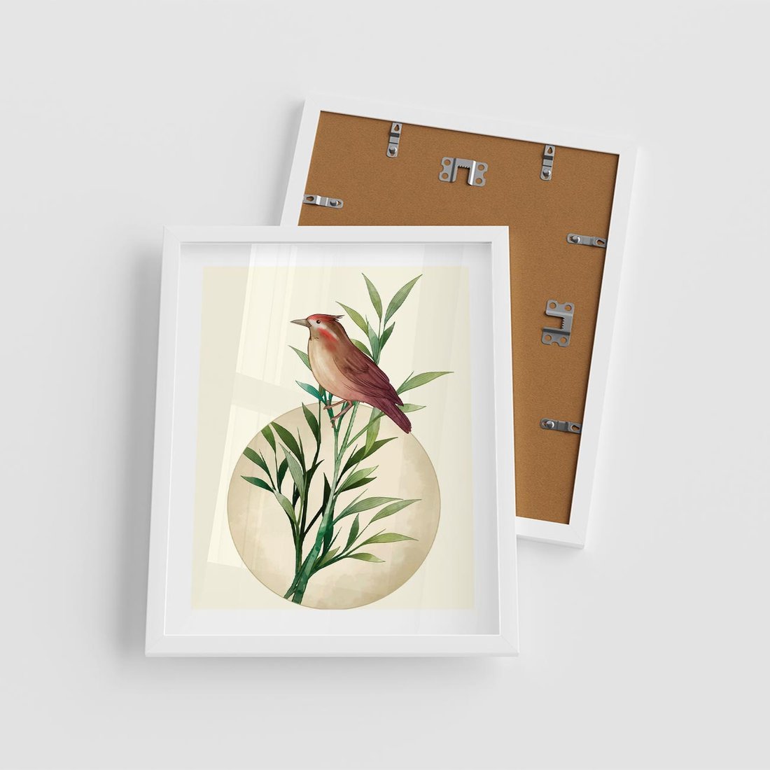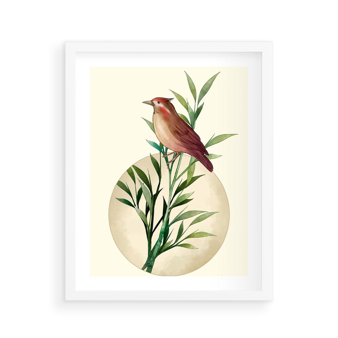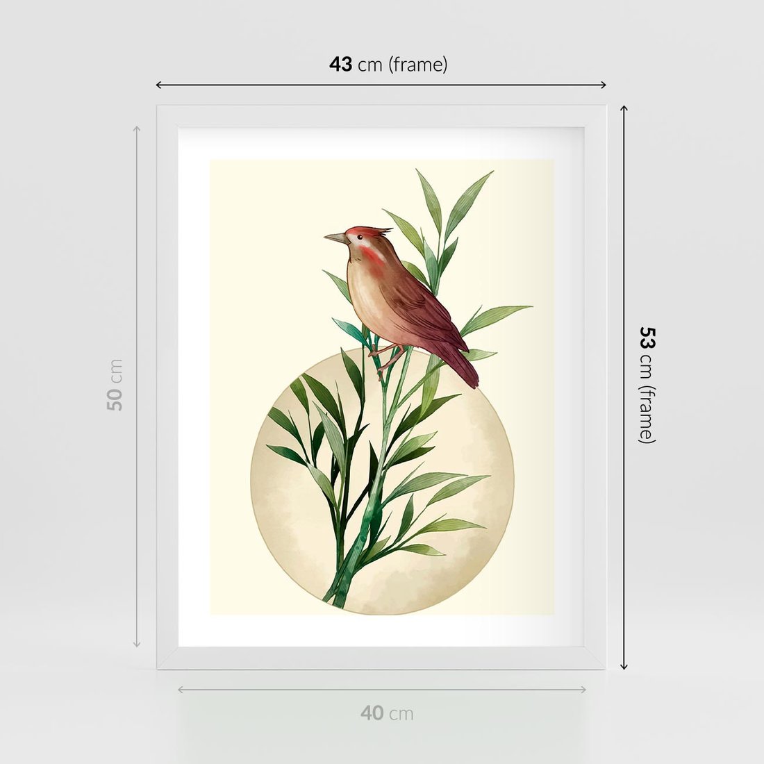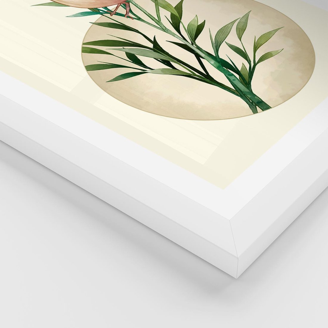 Plakat w ramie 40x50 - Rozkwitająca Delikatność - japońska sztuka, ptak - rama biała