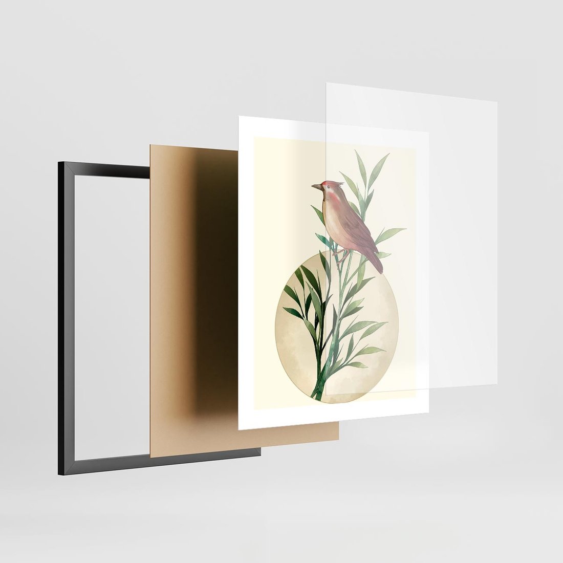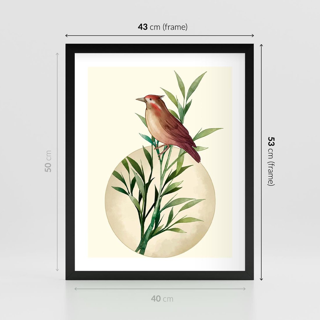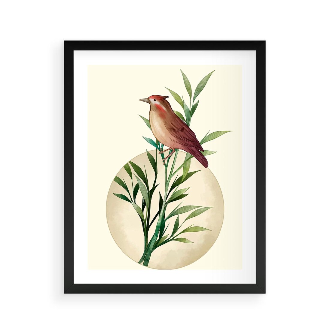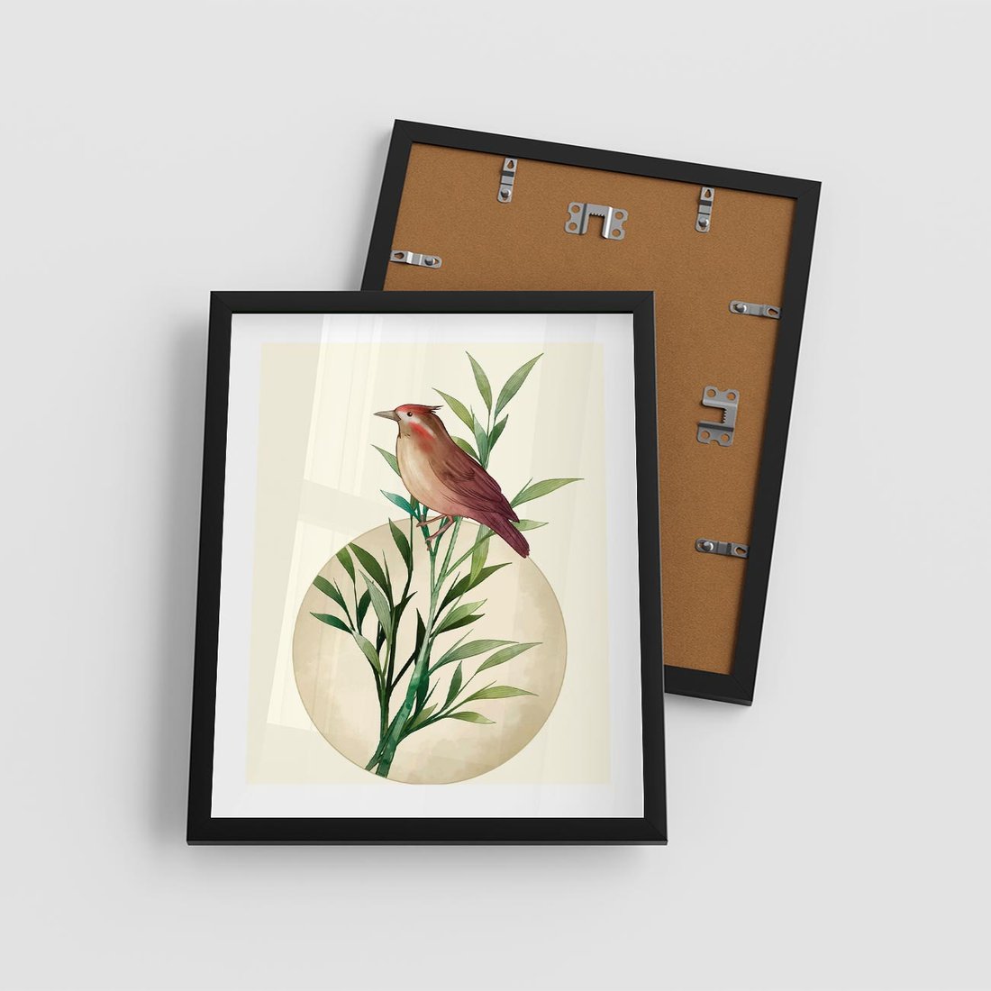 Plakat w ramie 40x50 - Rozkwitająca Delikatność - japońska sztuka, ptak - rama czarna