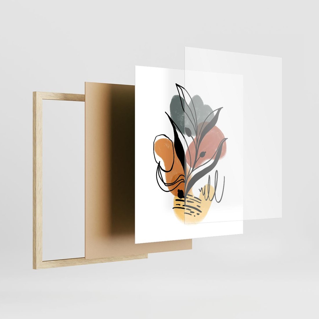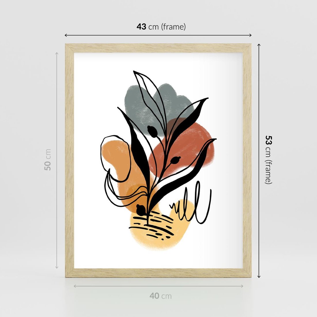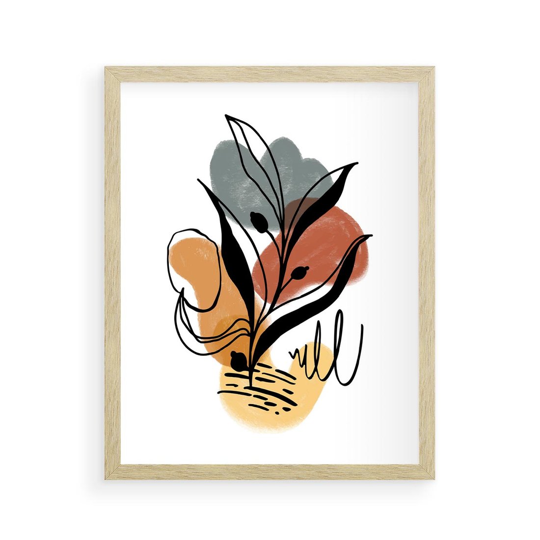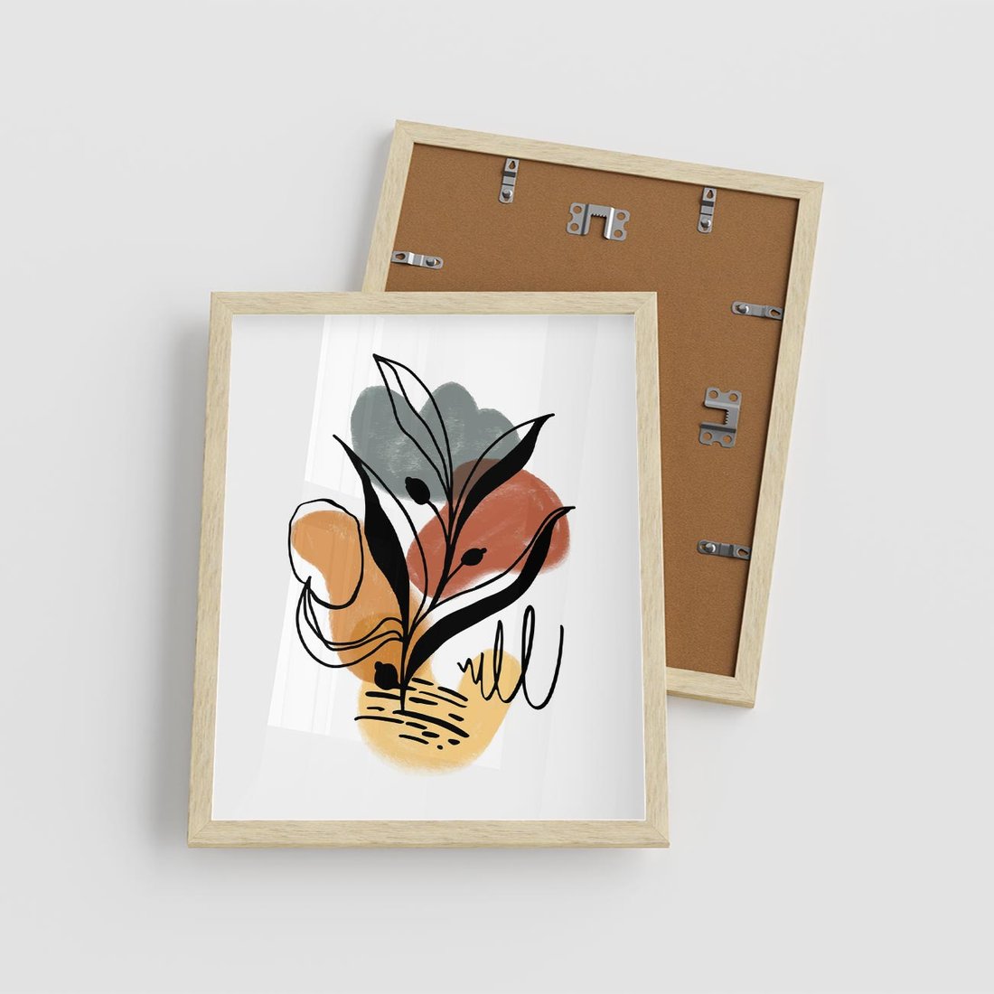 Nasz plakat to nowoczesna abstrakcja z czarnym szkicem elementów roślinnych, ozdobionym akwarelowymi plamami. To unikalne połączenie przynosi do Twojej przestrzeni wyrazistą energię i artystyczną głębię, oddając zarazem elegancję i dynamikę natury.