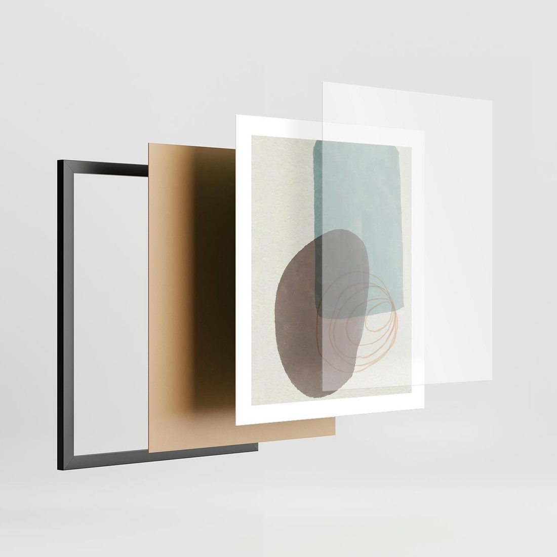 Plakat w ramie 40x50 - Rozkwitające Formy - geometryczne elementy, stonowane ziemiste kolory - rama czarna