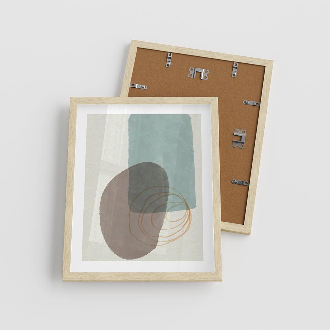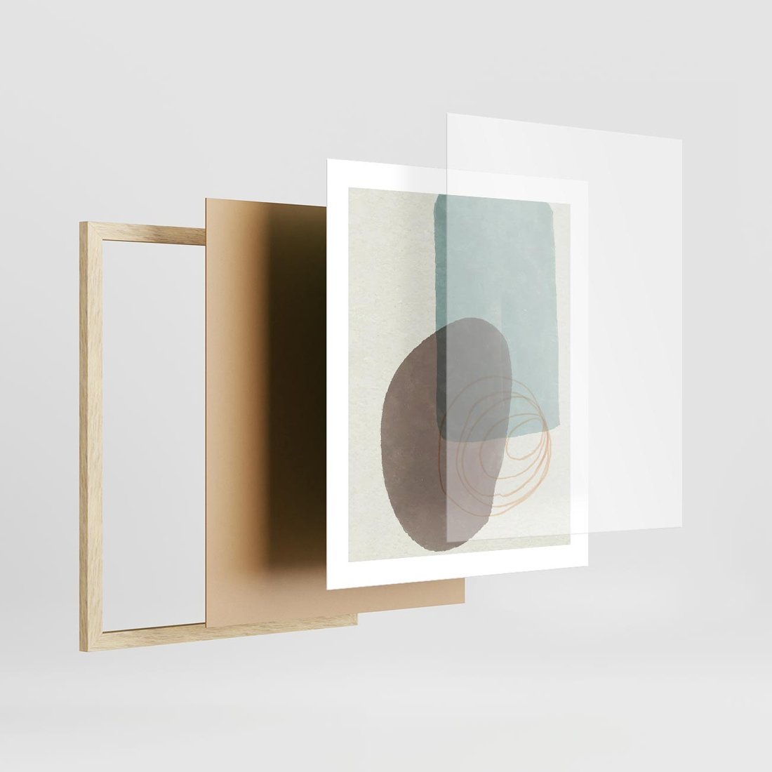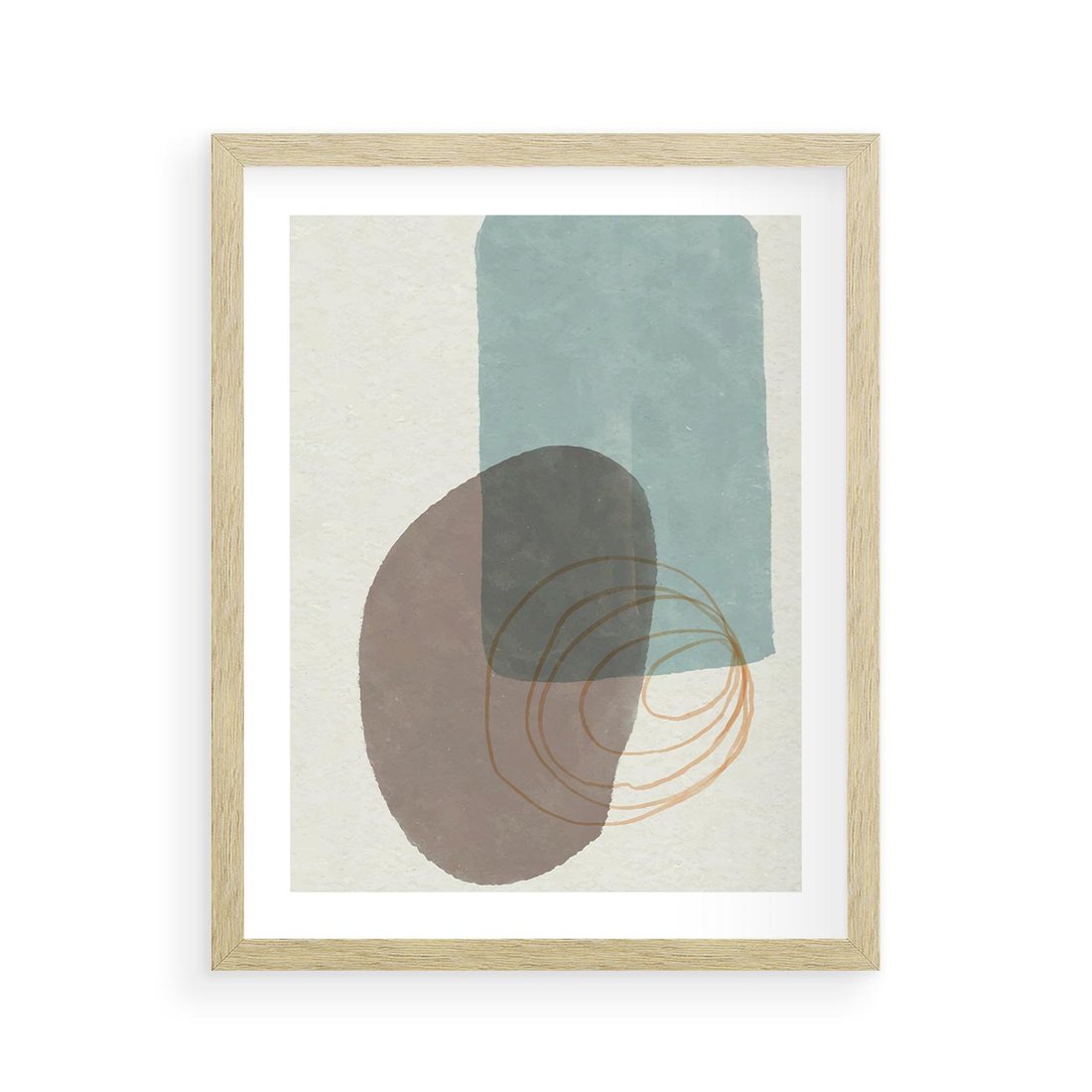 Plakat w ramie 40x50 - Rozkwitające Formy - geometryczne elementy, stonowane ziemiste kolory - rama drewno
