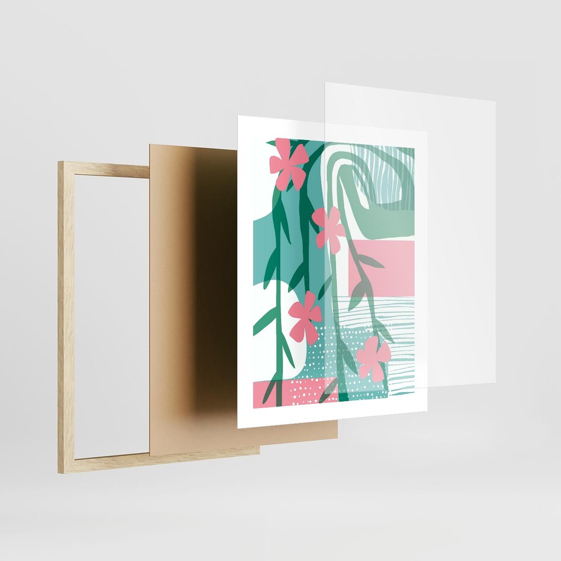 Plakat w ramie 40x50 - Rozkwitające Harmonie Form - abstrakcyjne pastelowe kwiaty, nowoczesna sztuka - rama drewno