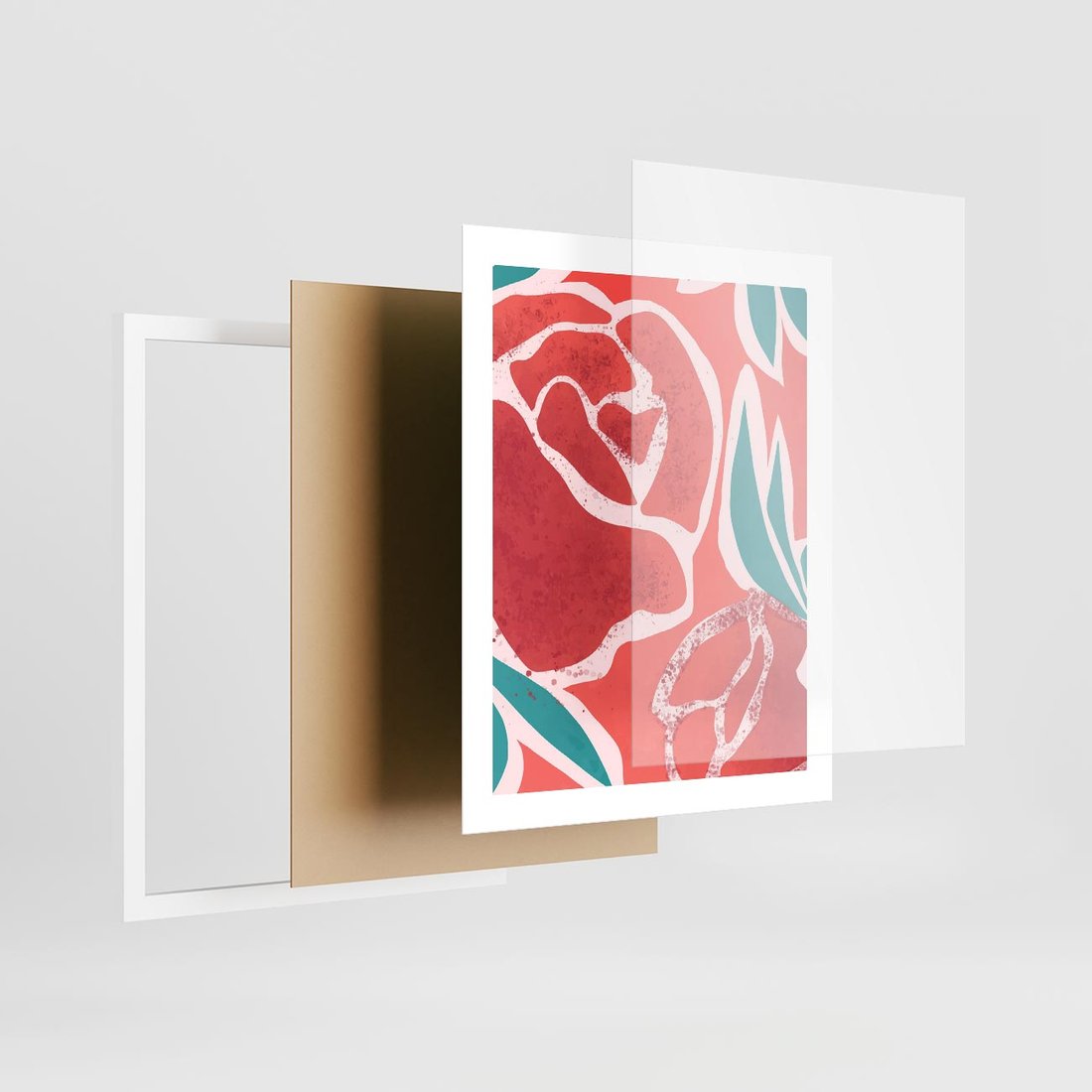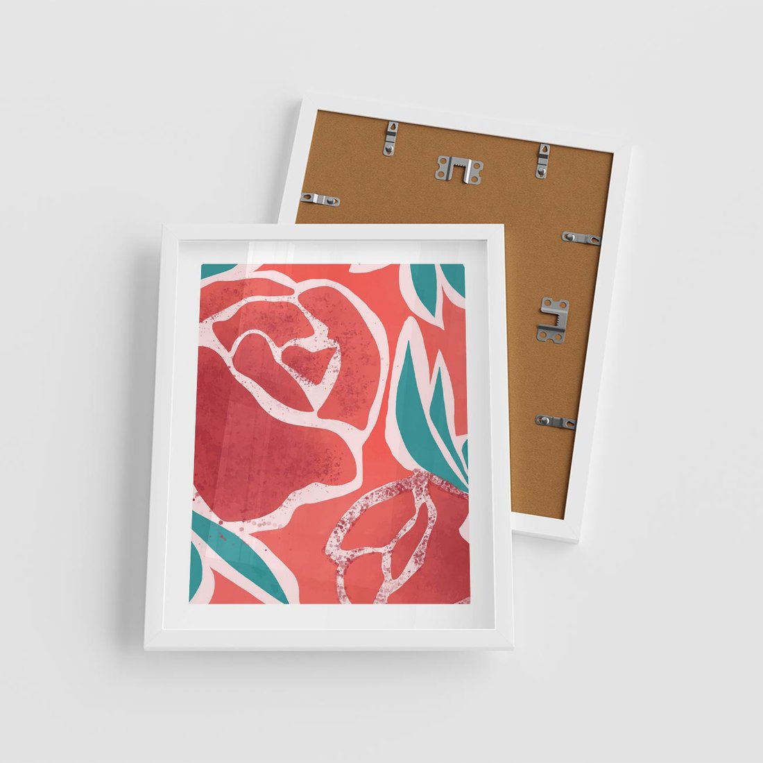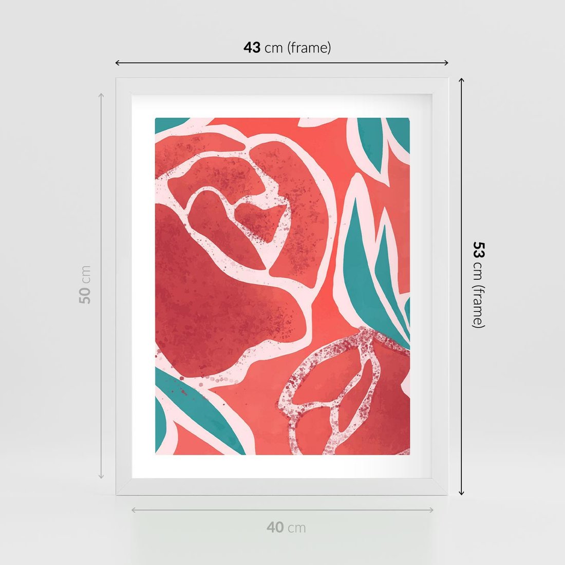 Plakat w ramie 40x50 - Rozkwitające Kształty - nowoczesny plakat, abstrakcyjne róże - rama biała