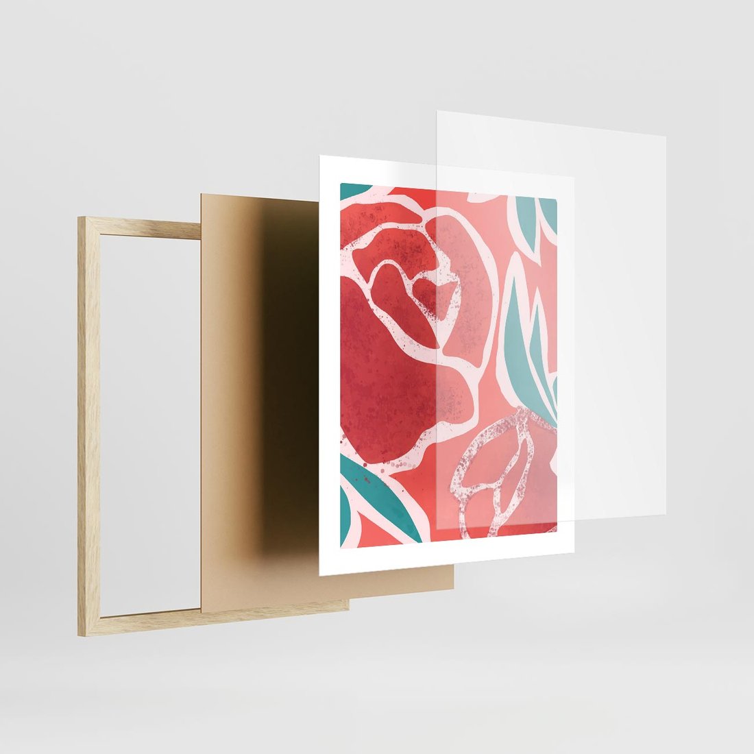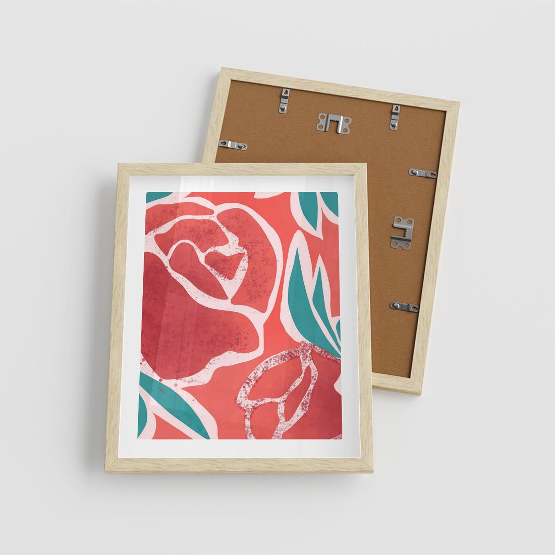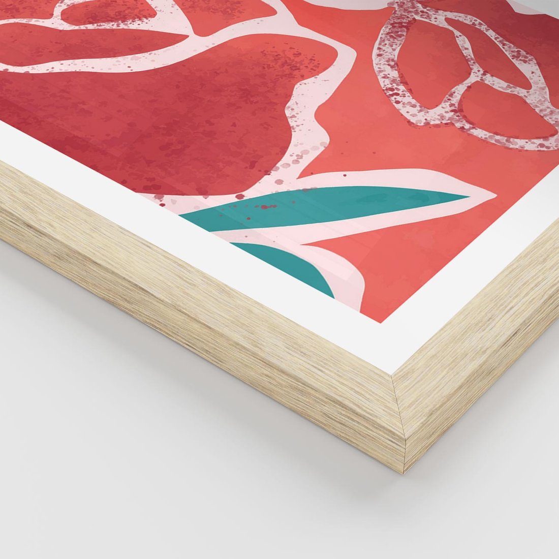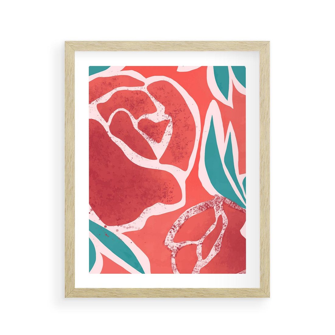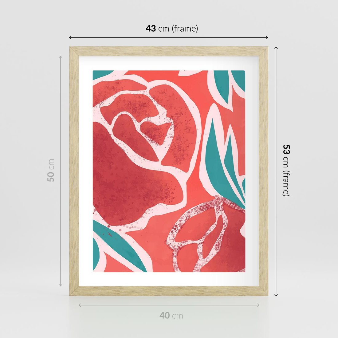Plakat w ramie 40x50 - Rozkwitające Kształty - nowoczesny plakat, abstrakcyjne róże - rama drewno