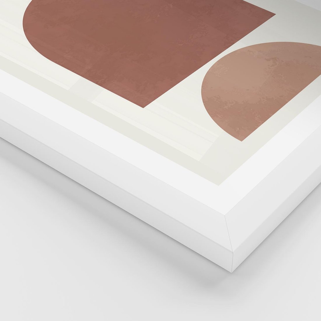Plakat w ramie 40x50 - Rozkwitające Odbicia - abstrakcyjne geometryczne kształty, odcienie brązu i beżu - rama biała