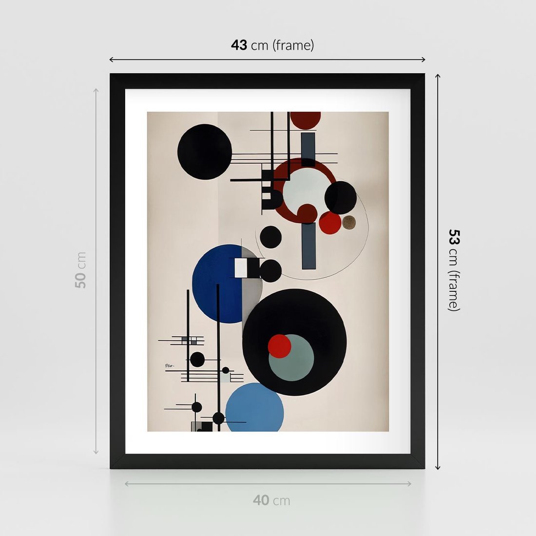 Plakat w ramie 40x50 - Rozkwitające Wibracje Wyobraźni - abstrakcyjna geometryczna kompozycja, koła linie - rama czarna