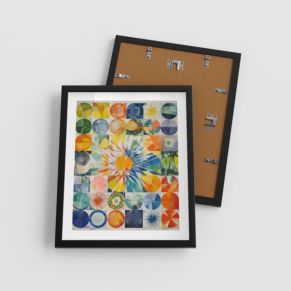 Ten abstrakcyjny obraz łączy w sobie mnogość kolorów i drobne elementy, które w formie geometrycznych kształtów tworzą intrygującą kompozycję. Jego ciekawa forma i zaskakująca struktura przyciągają wzrok i zachęcają do głębszego zrozumienia sztuki abstrakcji.