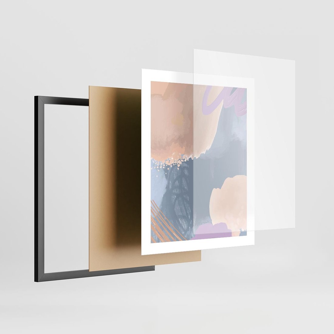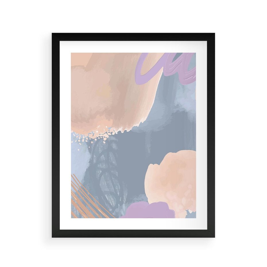 Plakat w ramie 40x50 - Rozmyte Akwarelowe Marzenia - abstrakcyjne akwarelowe plamy, pastele - rama czarna