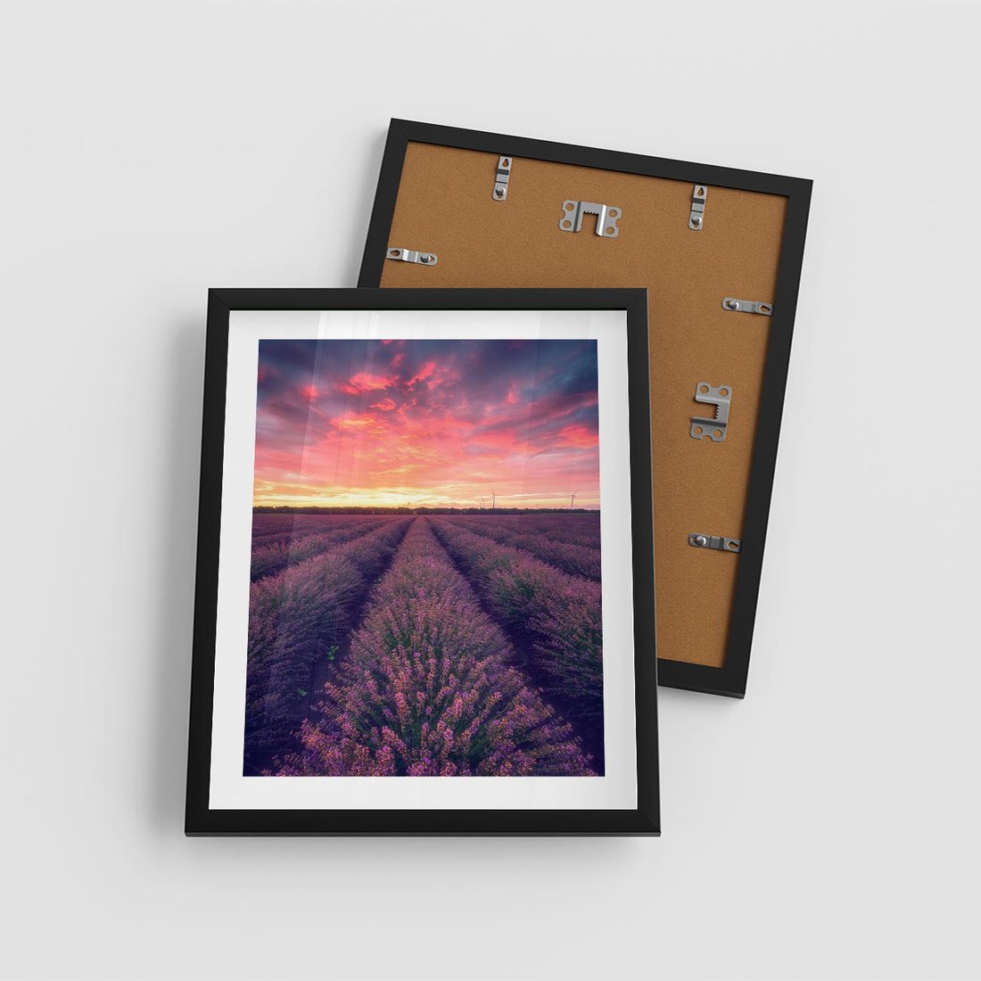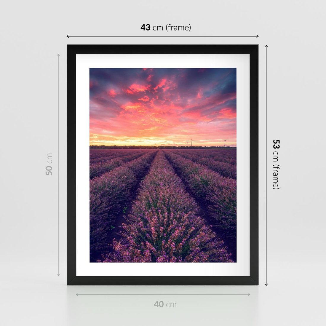 Plakat w ramie 40x50 - Różowe Niebo nad Polami - pola lawendy, zachód słońca - rama czarna