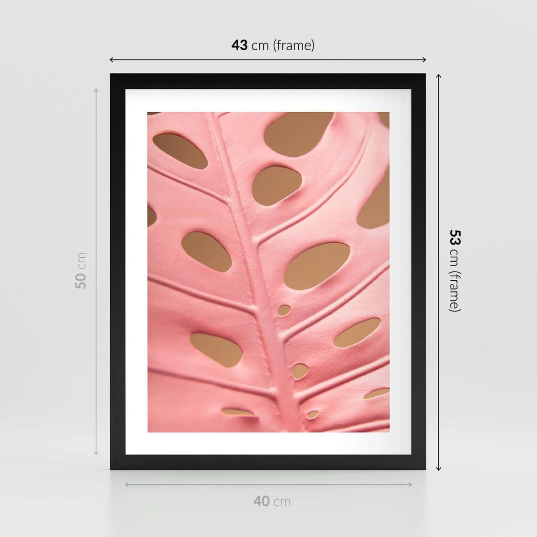 - Plakat w ramie 40x50 - Różowy Liść Monstery