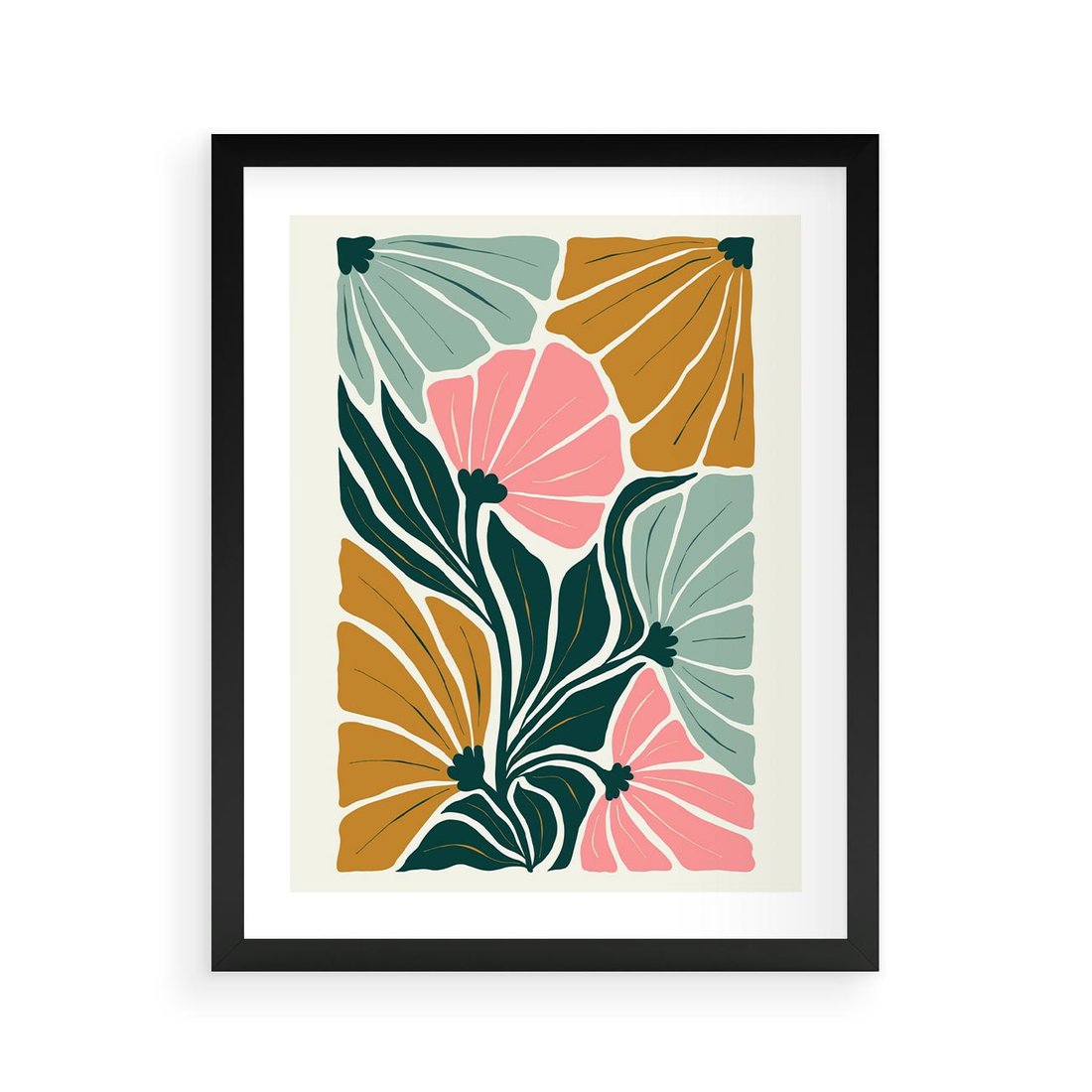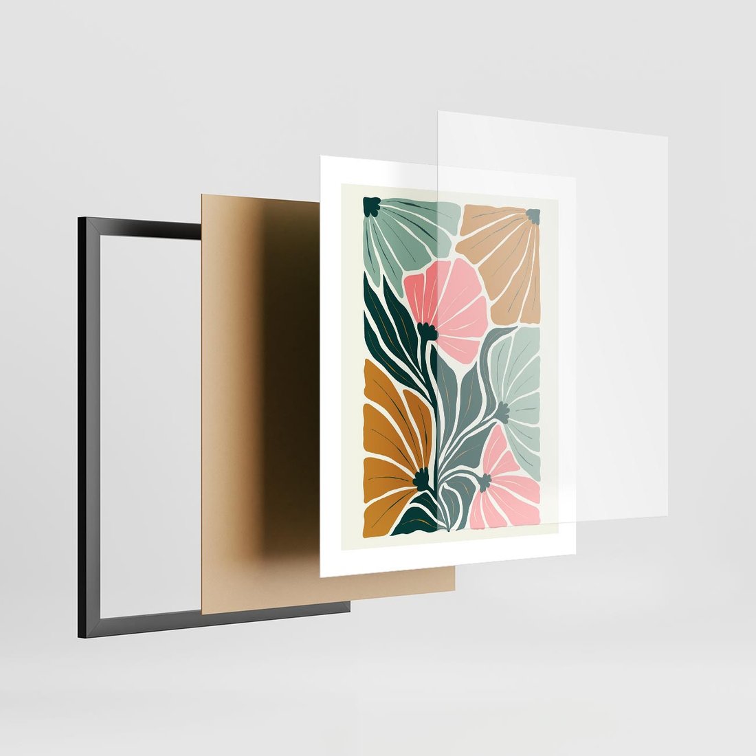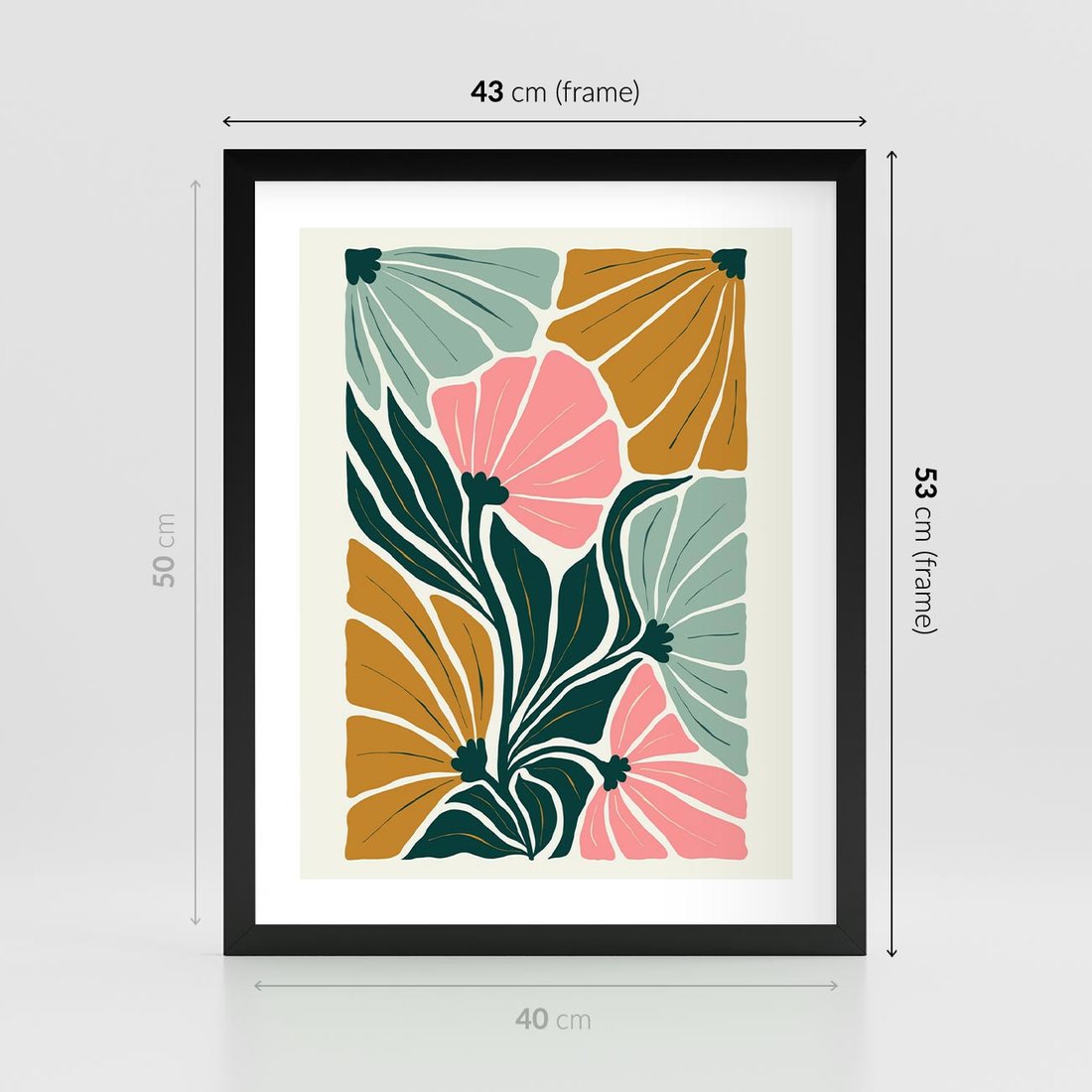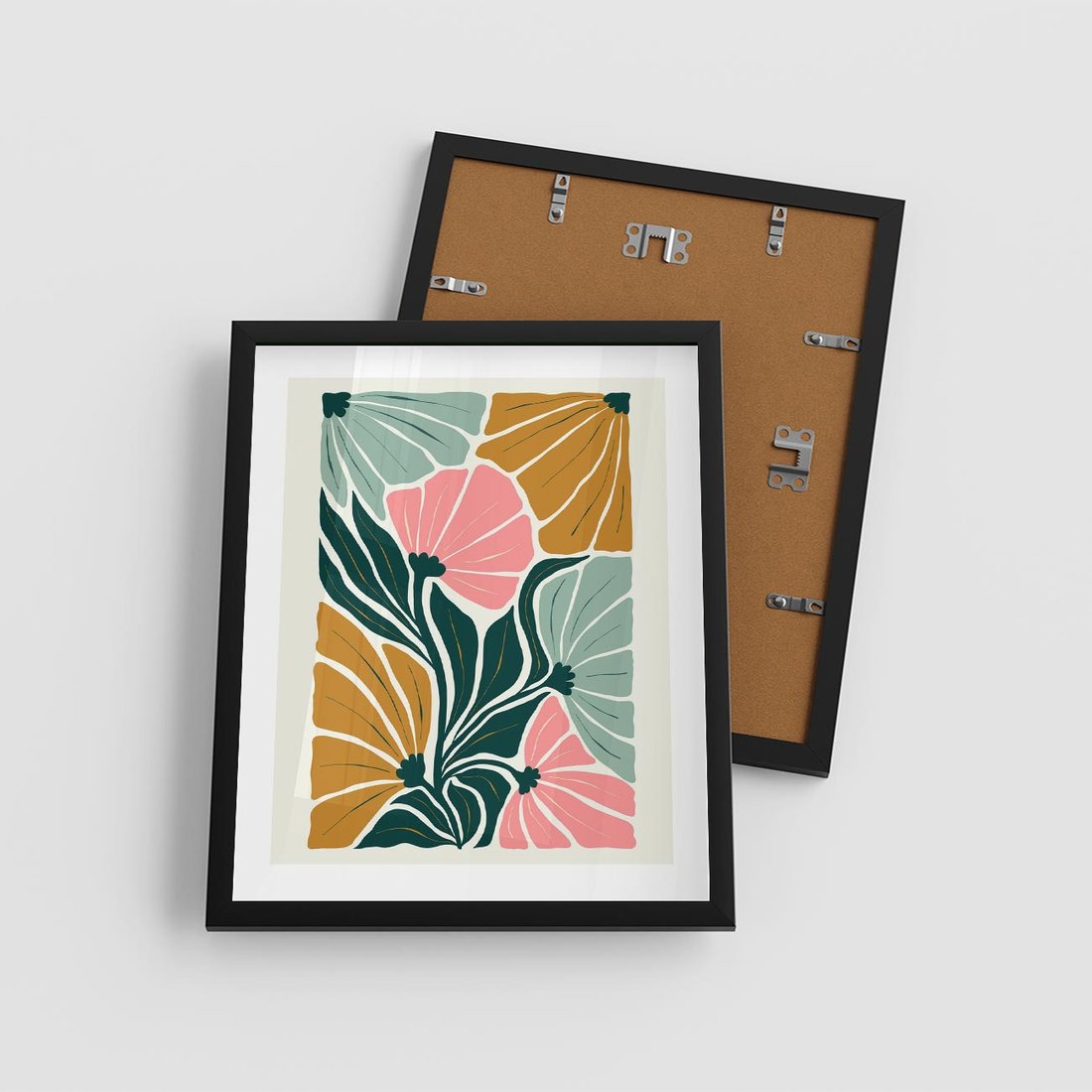 Plakat w ramie 40x50 - Rozplątane Myśli - abstrakcyjna kompozycja, pastelowe kwiaty - rama czarna