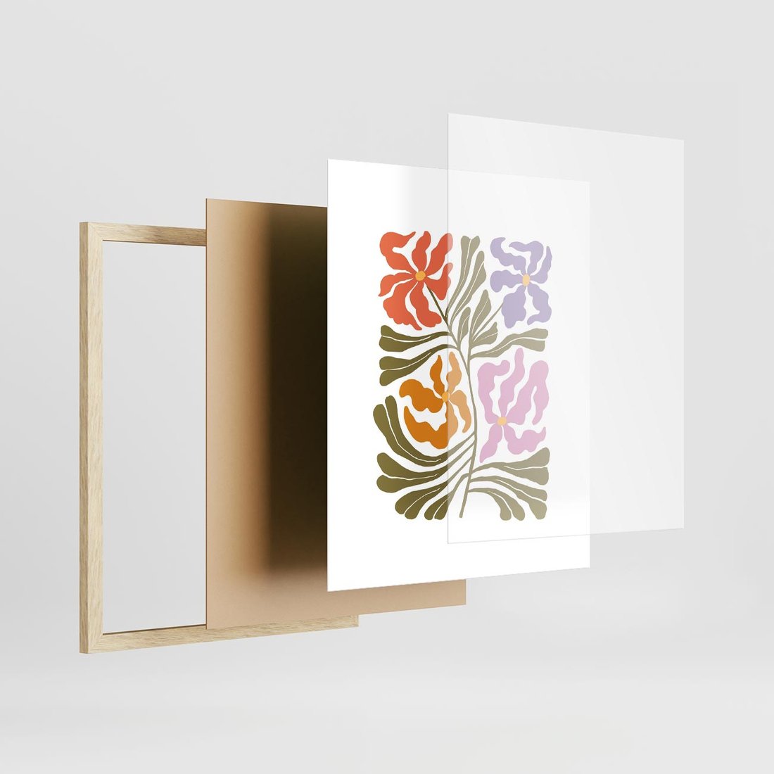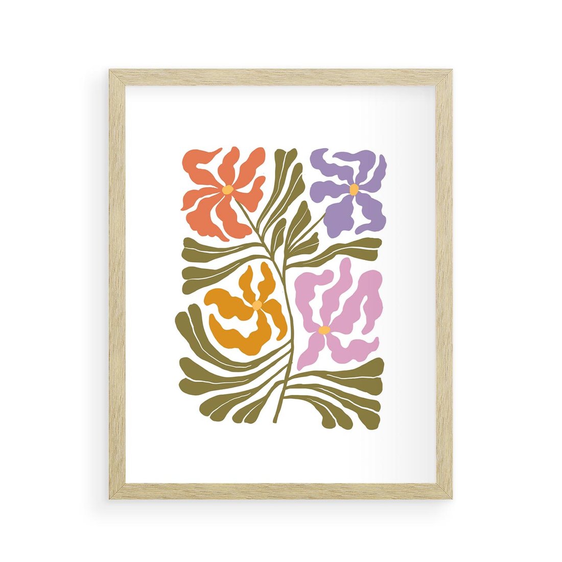 Plakat w ramie 40x50 - Rozplątane Wizje - abstrakcyjne kolorowe kwiaty, minimlizm - rama drewno