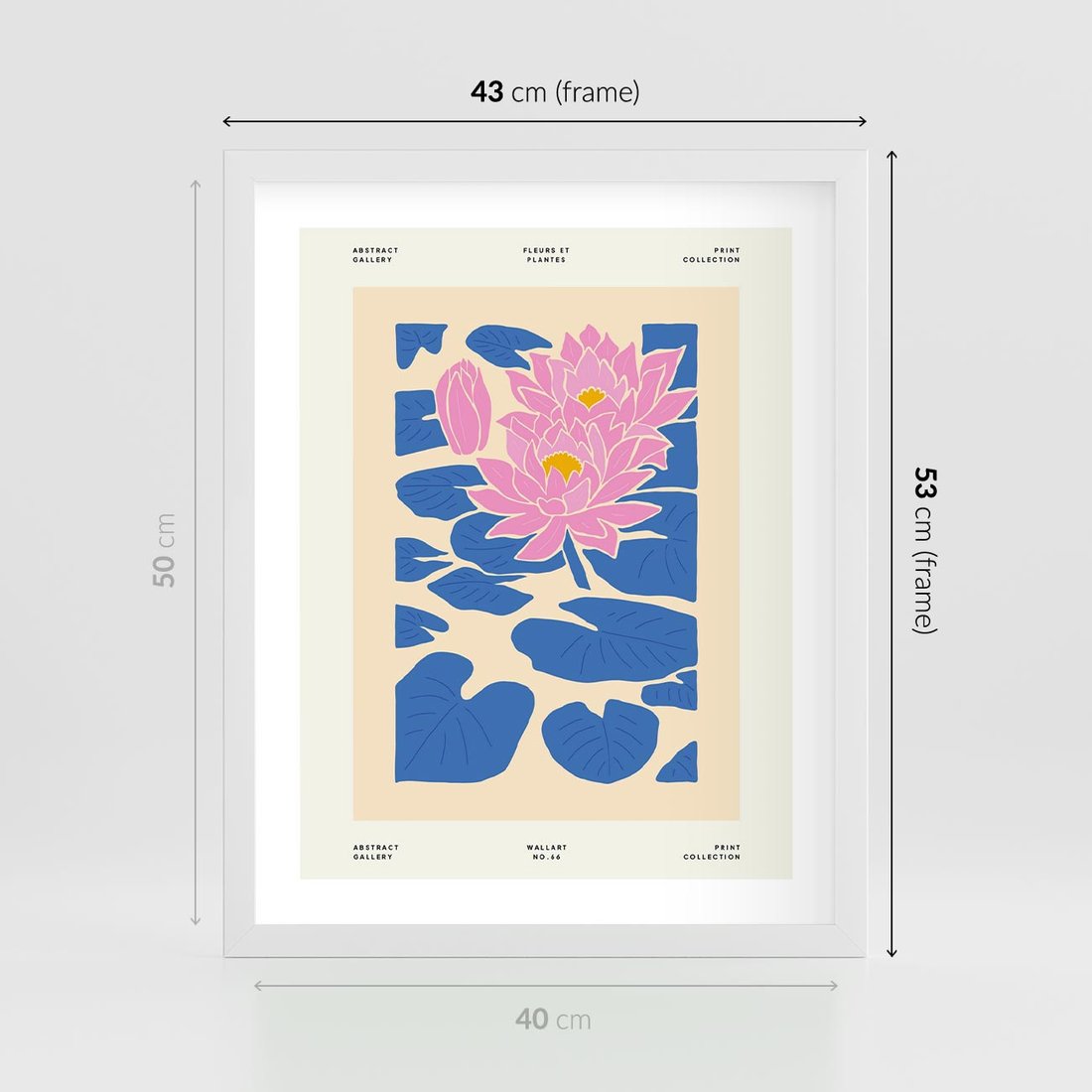 Plakat w ramie 40x50 - Rozświetlone Odbicia - lilie wodne, pastelowe kolory - rama biała