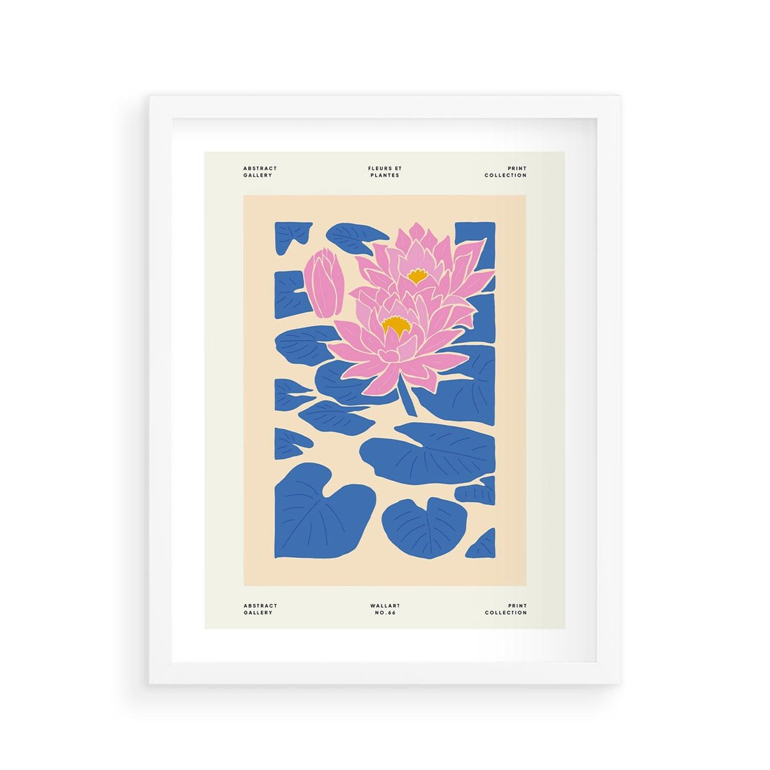 Ten nowoczesny plakat ukazuje pastelowe lilie wodne w odcieniach błękitu i różu, tworząc spokojny i oniryczny obraz. Sztuka ta jest idealnym dodatkiem do sypialni, tworząc atmosferę sennej harmonii i piękna natury.