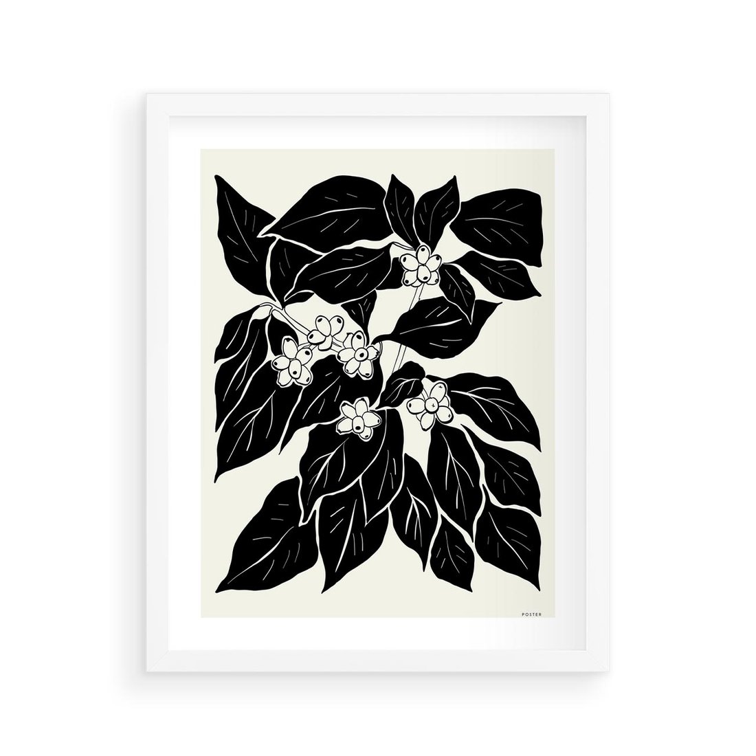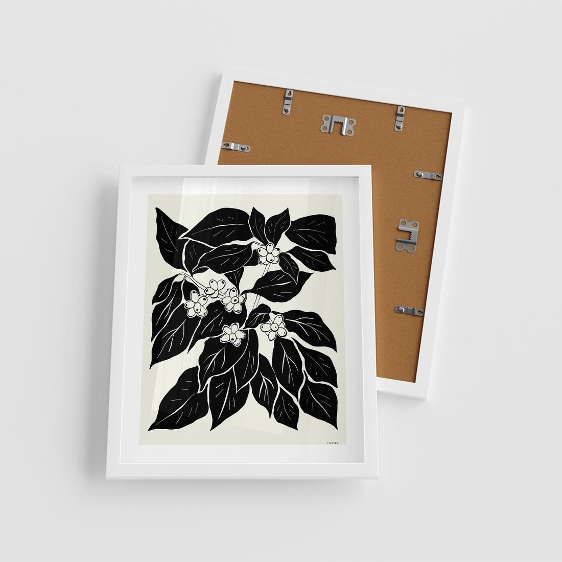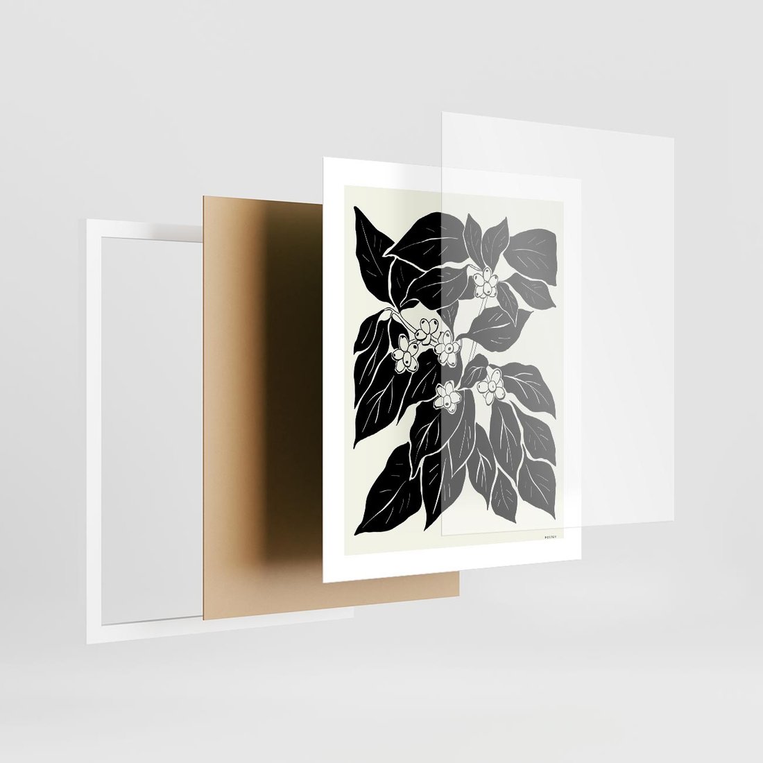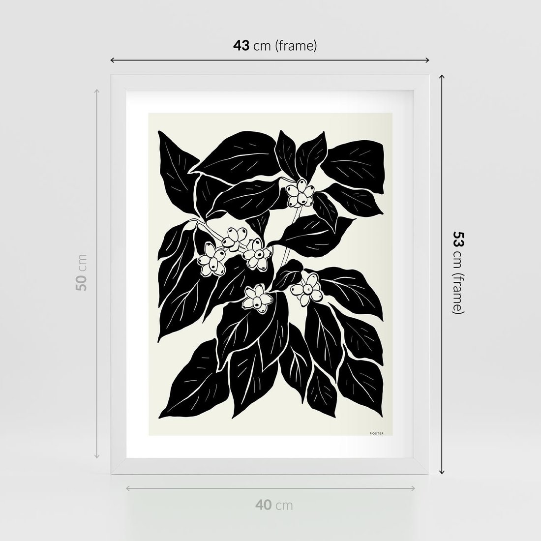 Odkryj urok natury w tej czarno-białej grafice. Liście i roślinne motywy tworzą minimalistyczną formę, oddając piękno roślinności w prostym stylu. Ten obraz doskonale wpisuje się w estetykę minimalizmu, wnosząc do wnętrza delikatny akcent przyrody i spokoju.