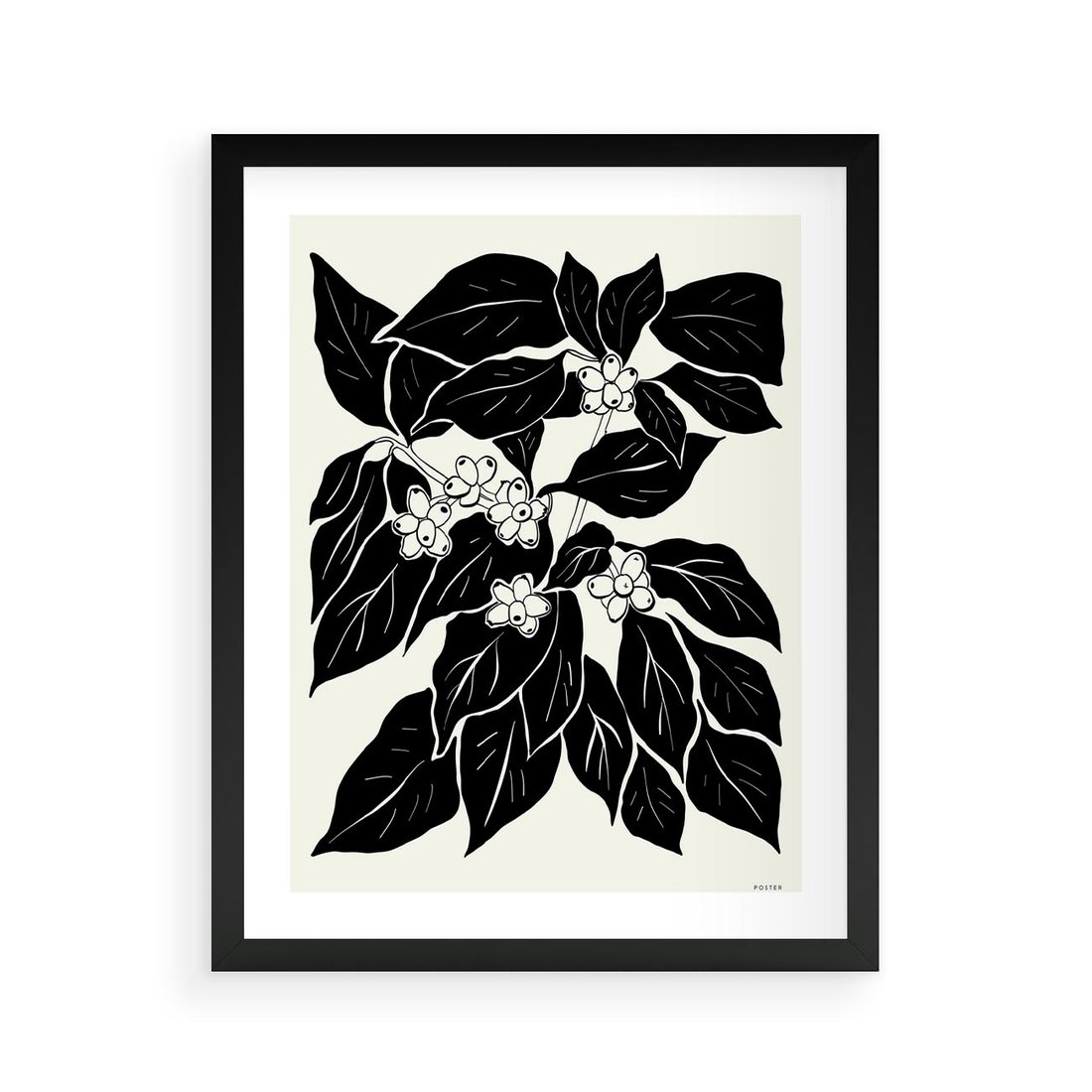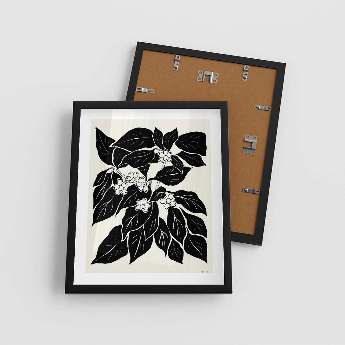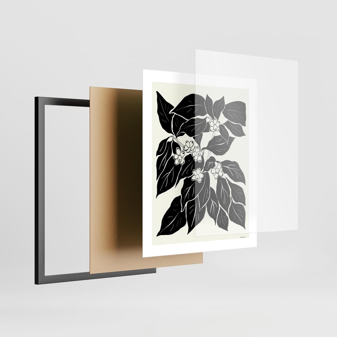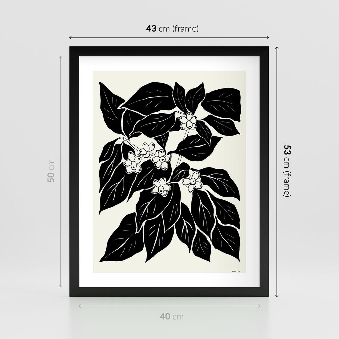 Odkryj urok natury w tej czarno-białej grafice. Liście i roślinne motywy tworzą minimalistyczną formę, oddając piękno roślinności w prostym stylu. Ten obraz doskonale wpisuje się w estetykę minimalizmu, wnosząc do wnętrza delikatny akcent przyrody i spokoju.