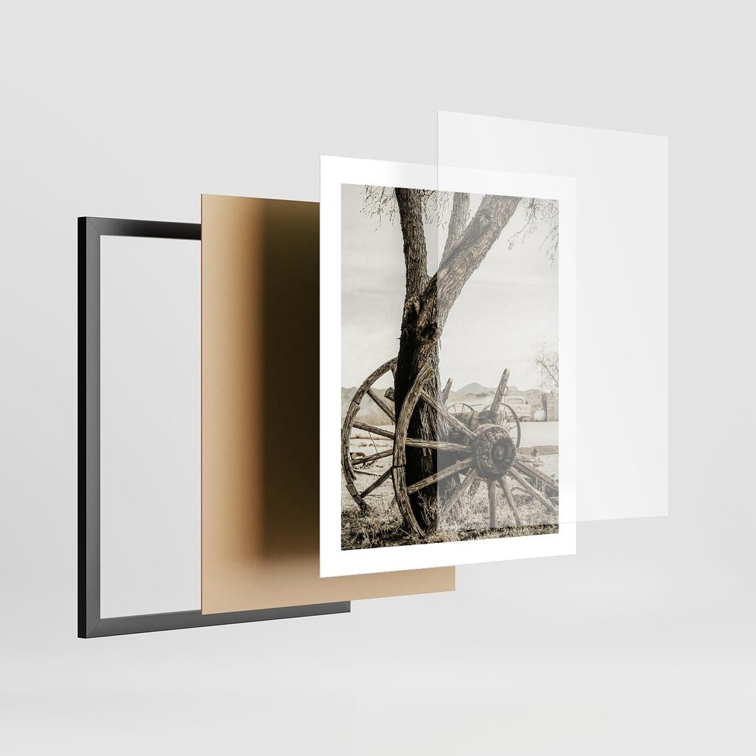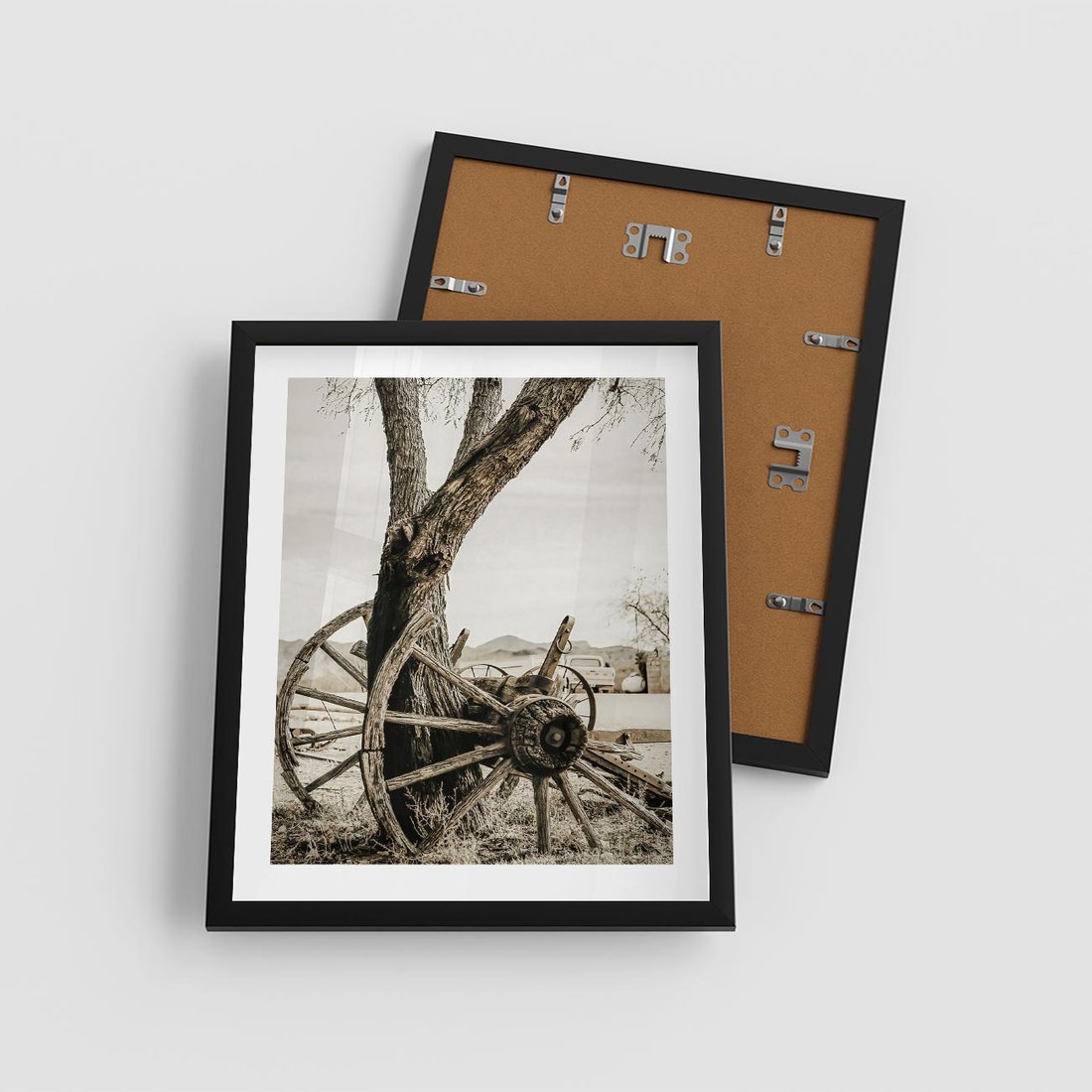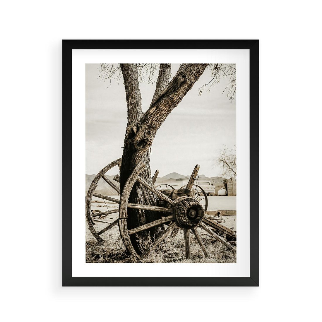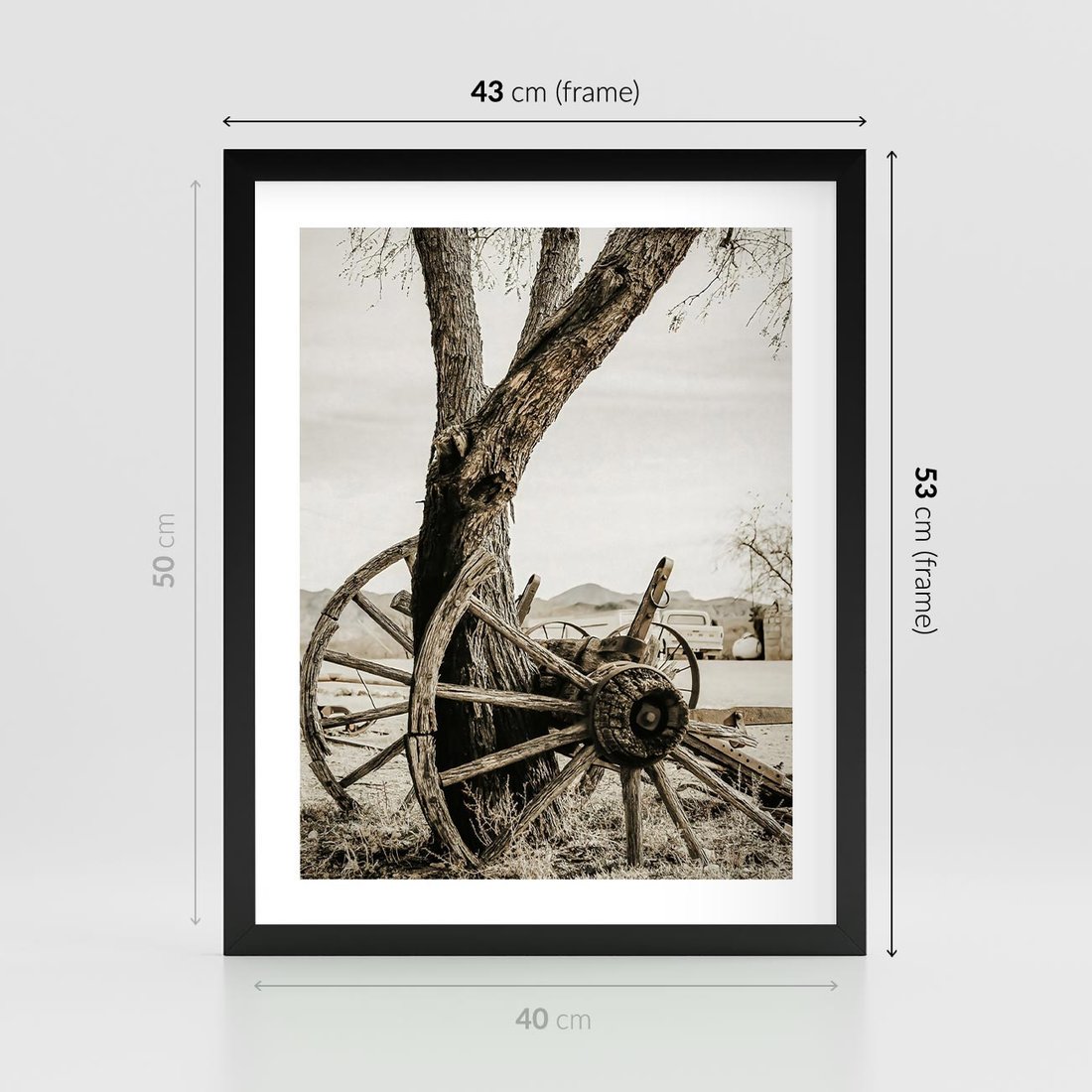 Plakat w ramie 40x50 - Rustykalna Tradycja - koło starego wozu, rustykalny styl - rama czarna