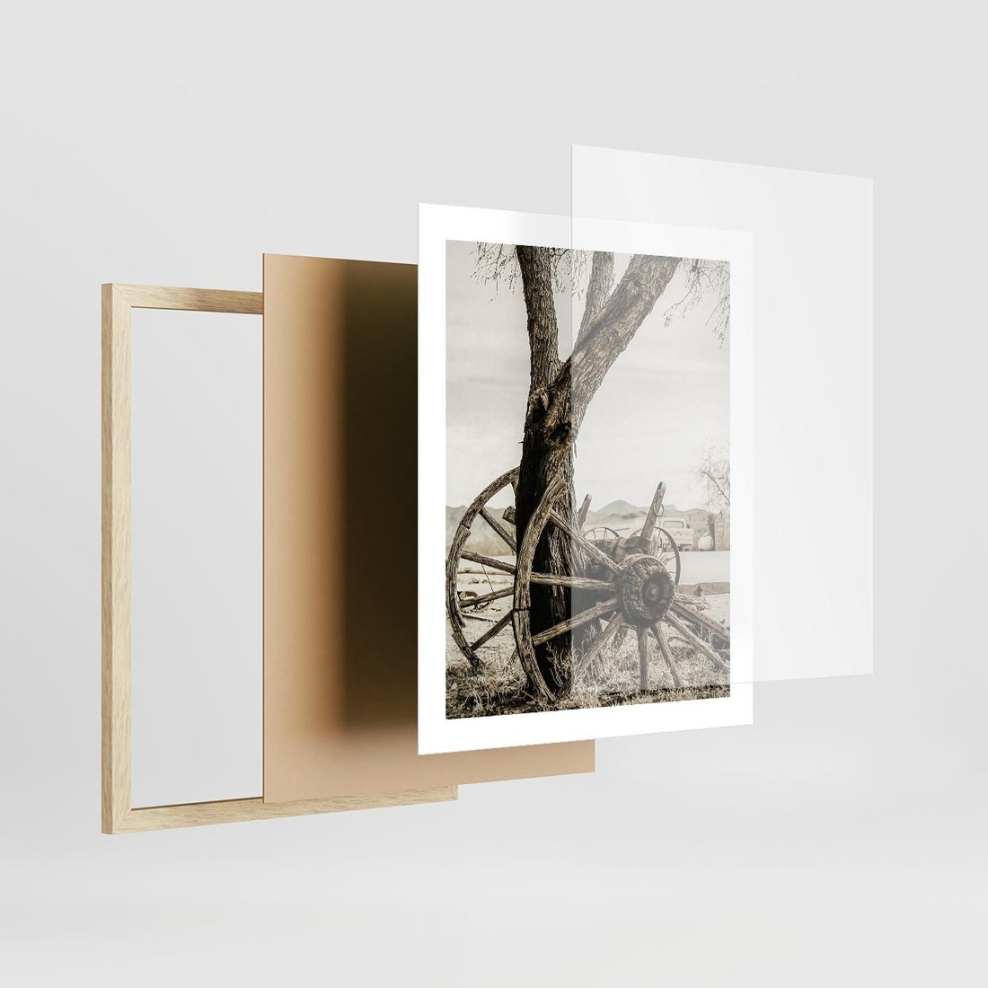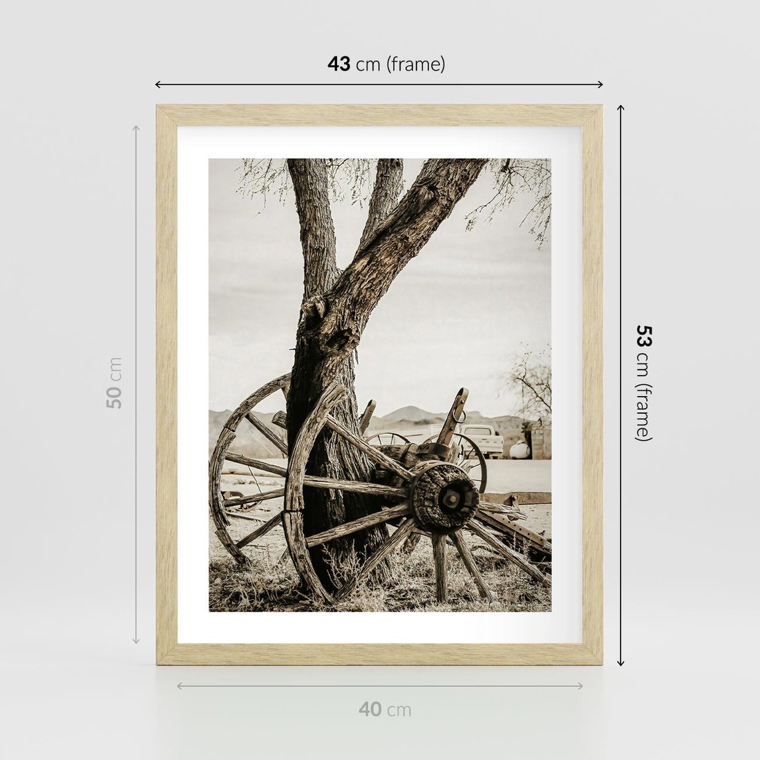 Plakat w ramie 40x50 - Rustykalna Tradycja - koło starego wozu, rustykalny styl - rama drewno