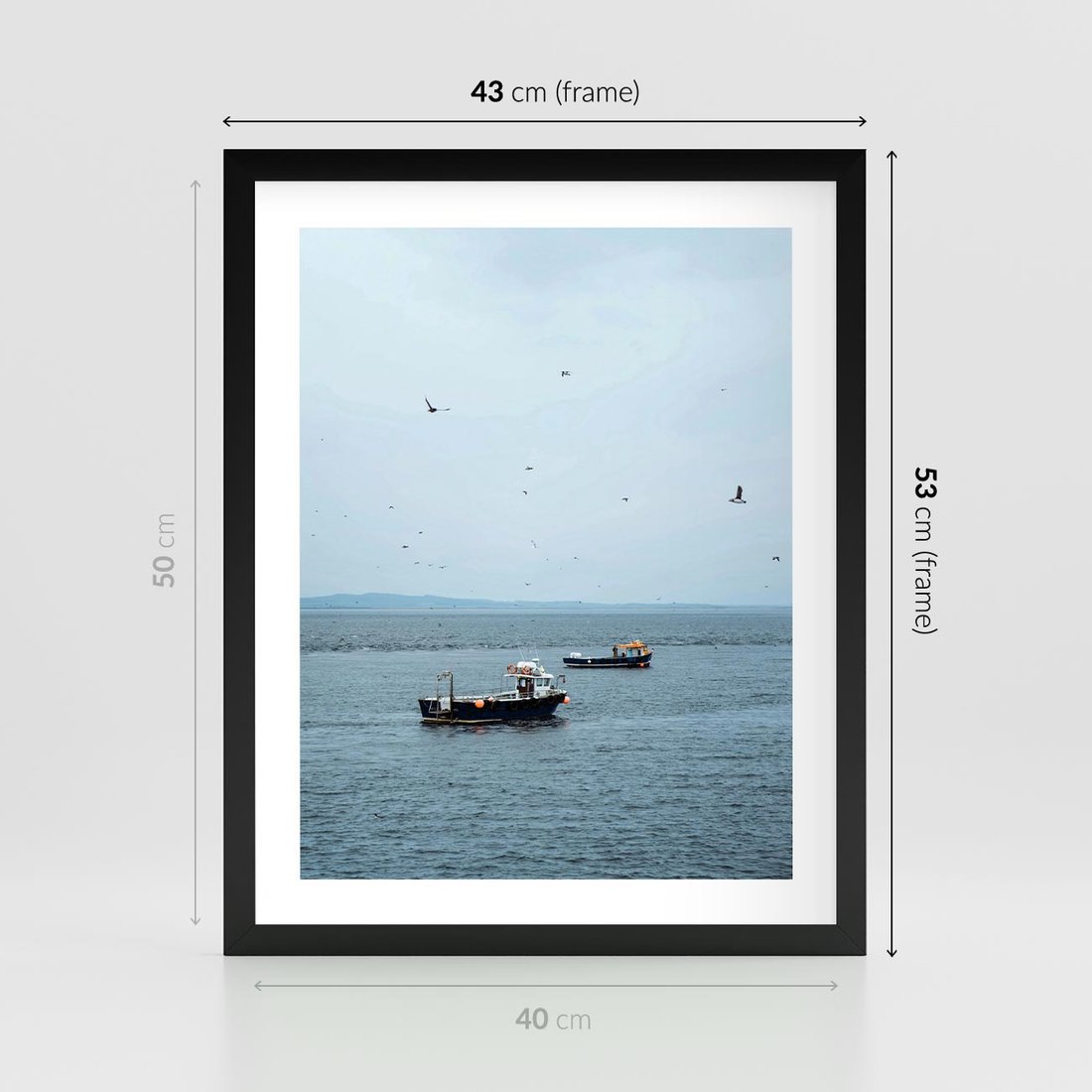Plakat w ramie 40x50 - Rybacki Urok - morze, kutry rybackie - rama czarna