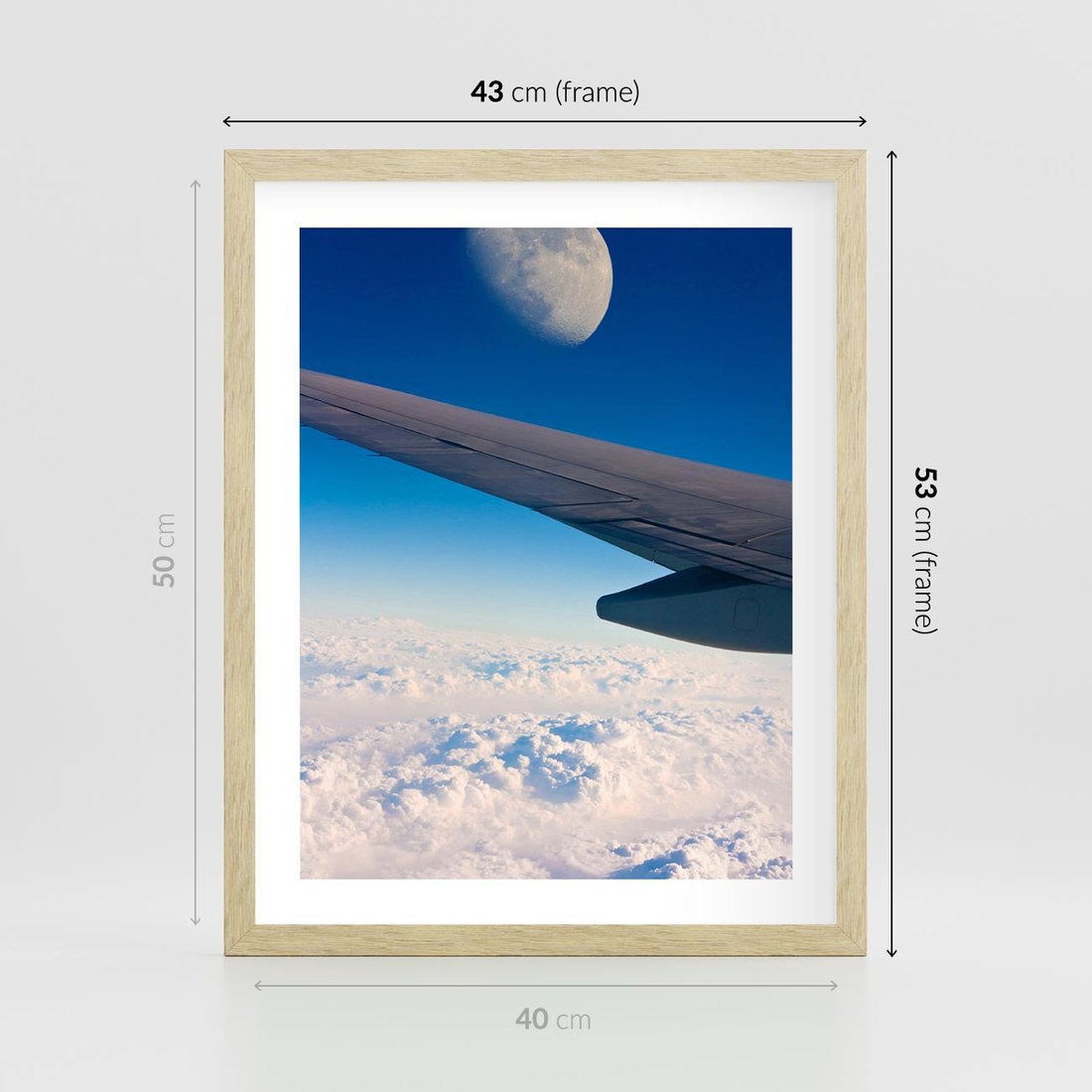 Plakat w ramie 40x50 - Samolot ku Księżycowi - samolot, ksieżyc - rama drewno