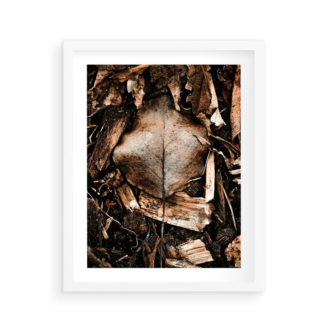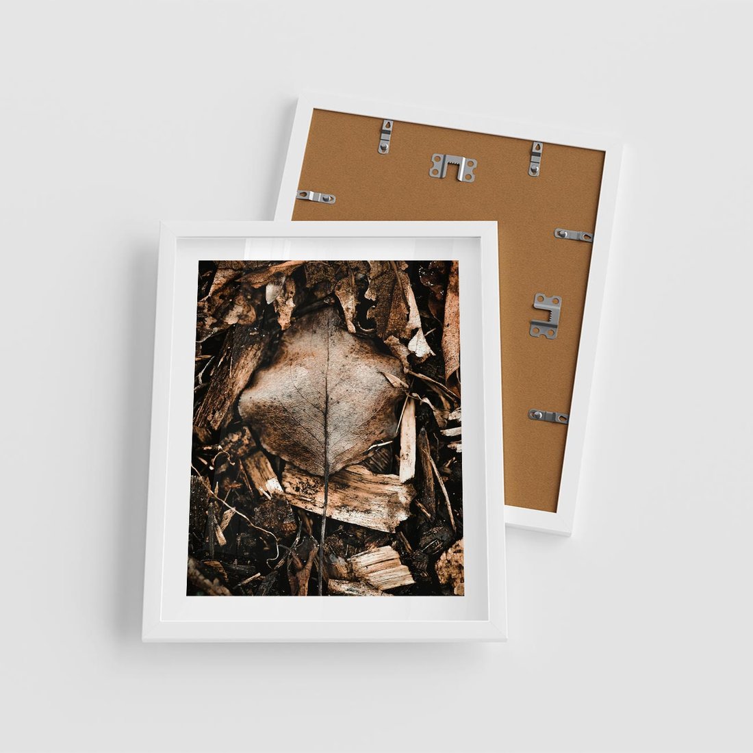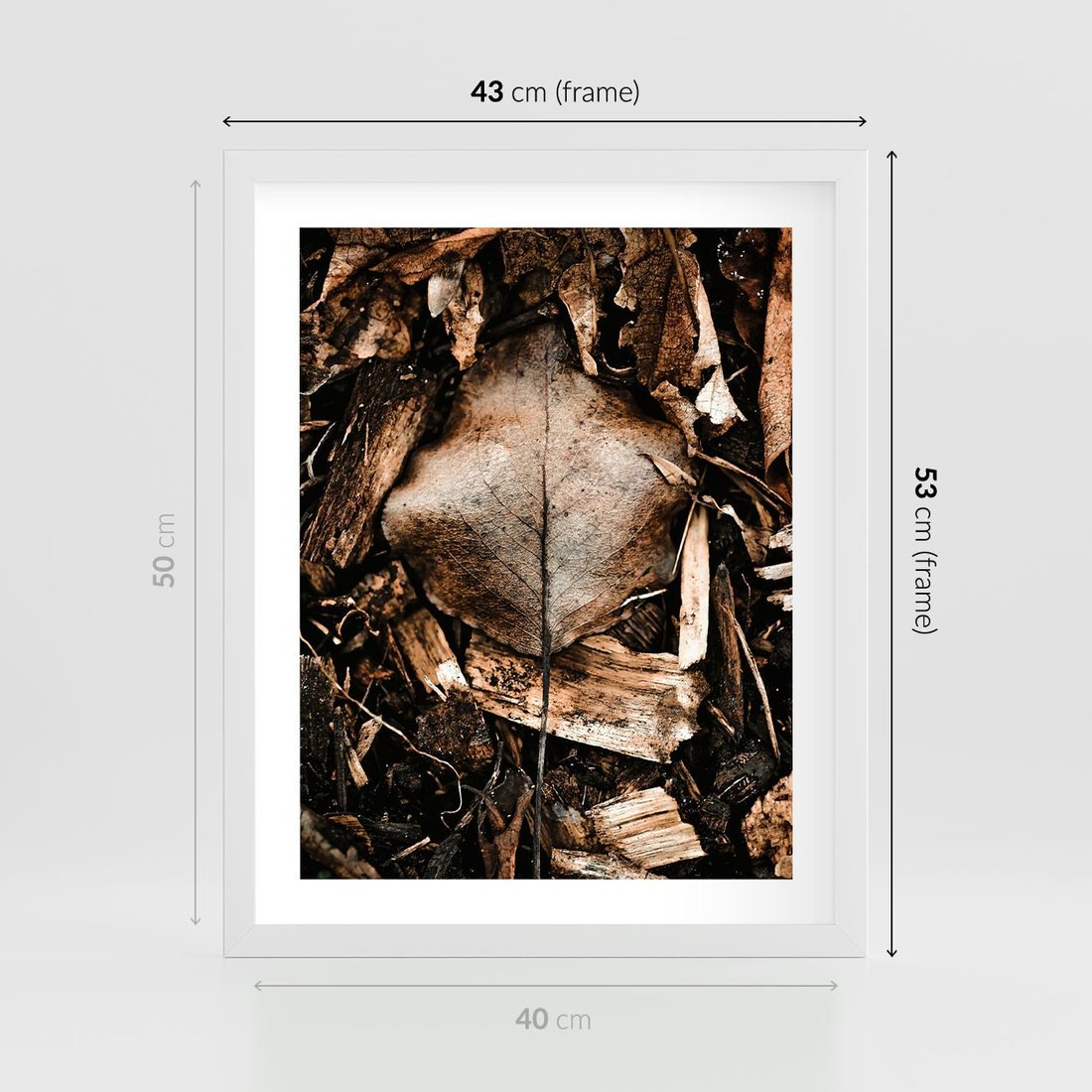 Plakat w ramie 40x50 - Samotny Liść - liść, brąz - rama biała