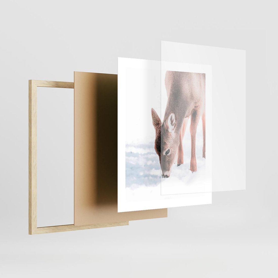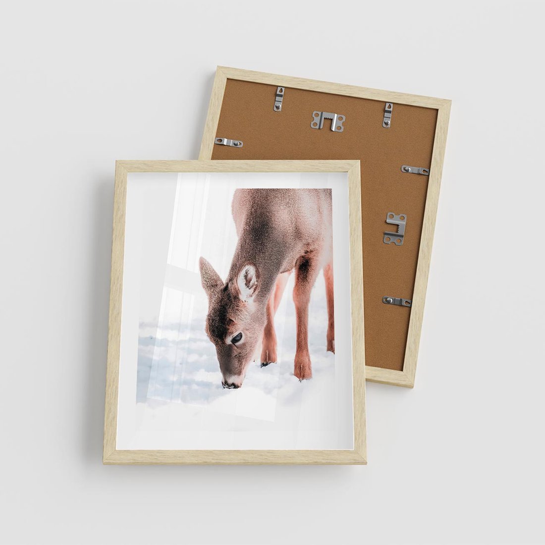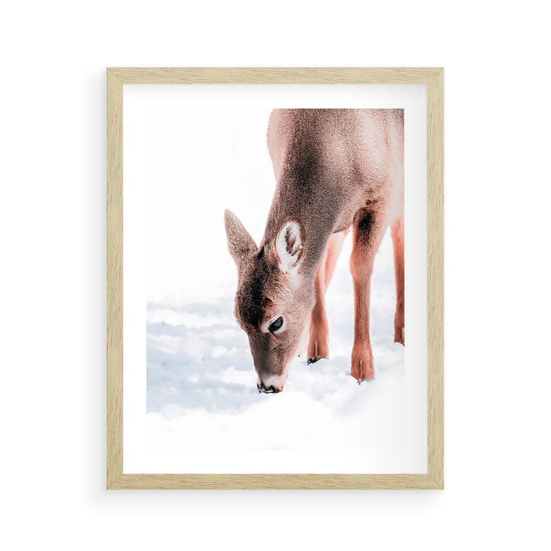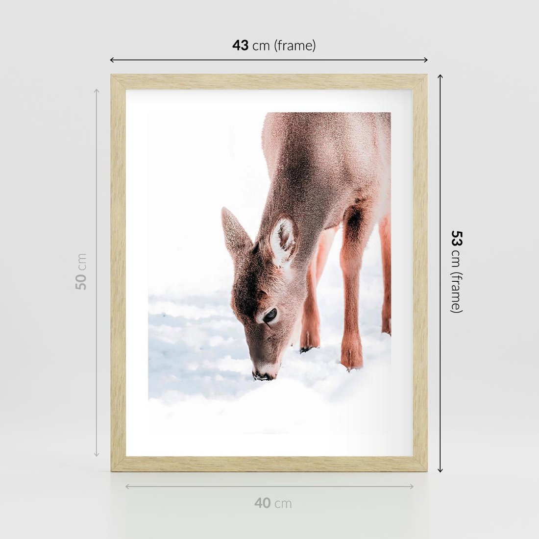 Plakat w ramie 40x50 - Sarna w Zimowym Raju - sarna, na śniegu - rama drewno