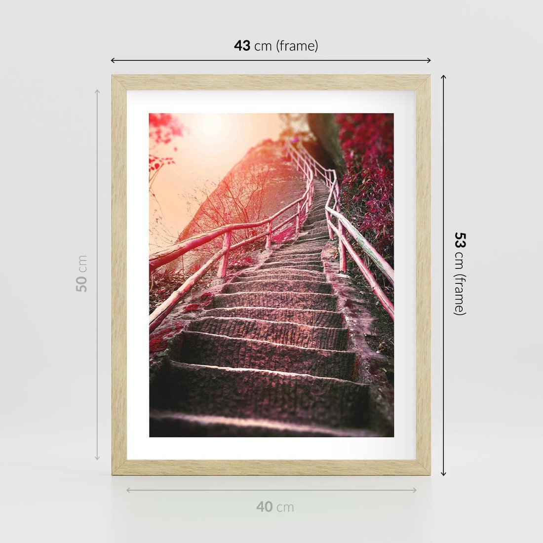 Plakat w ramie 40x50 - Schody prowadzące do nieznanych ścieżek - schody, ścieżka - rama drewno