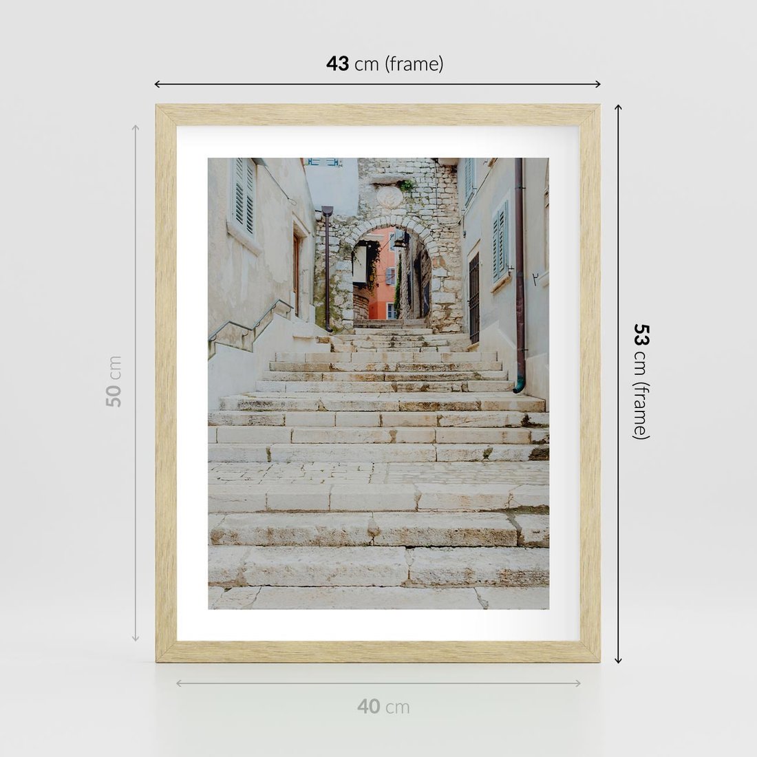 Plakat w ramie 40x50 - Schody we Włoskim Miasteczku - schody, śródziemnomorskie miasteczko - rama drewno