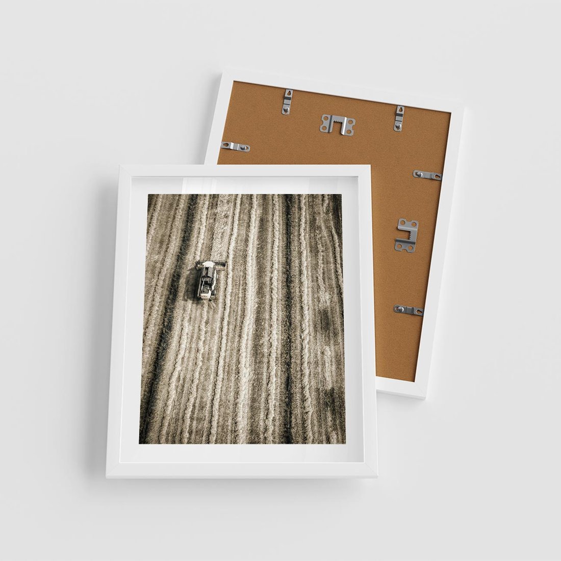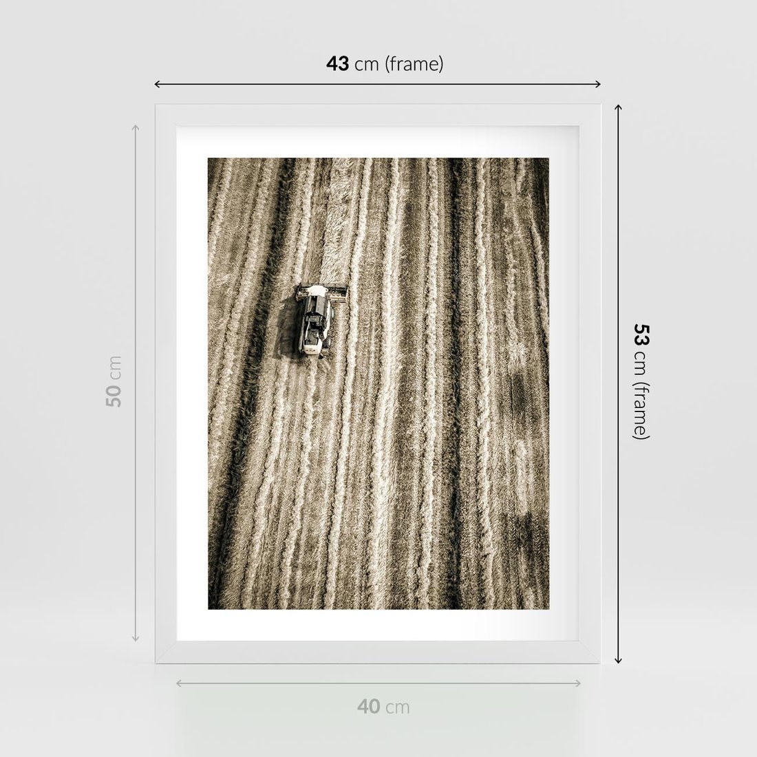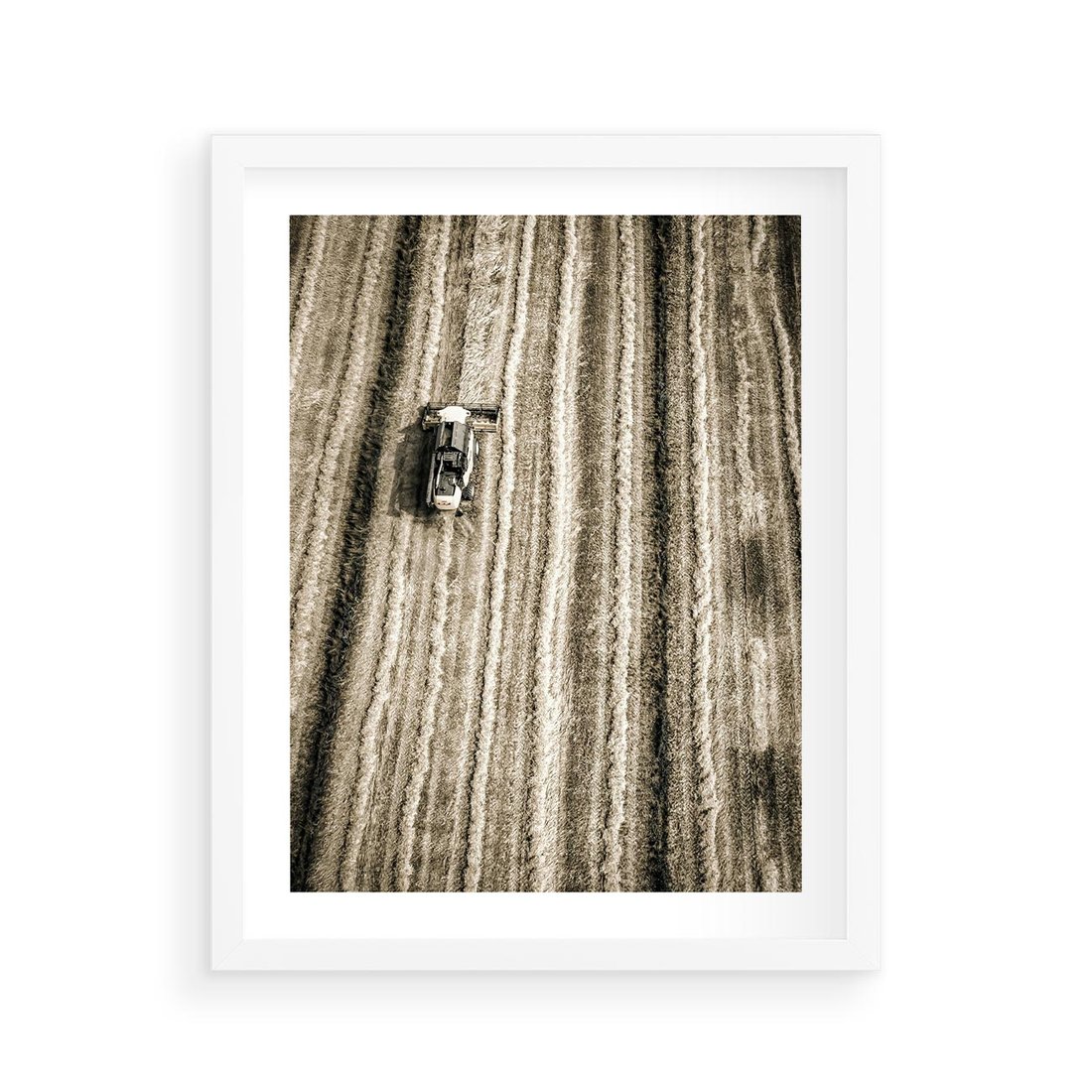 Plakat w ramie 40x50 - Sepia na Polu - kombajn, pole - rama biała
