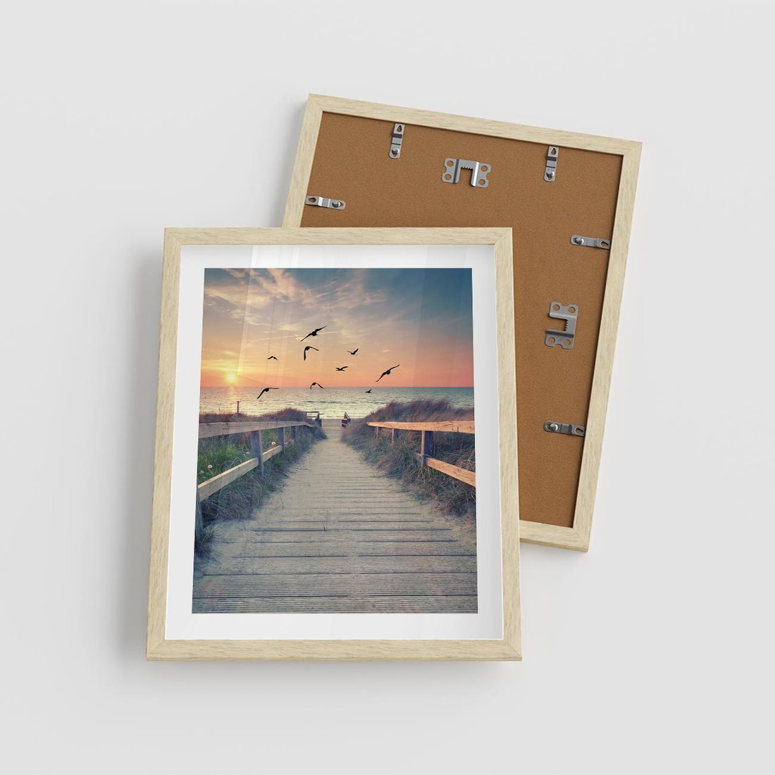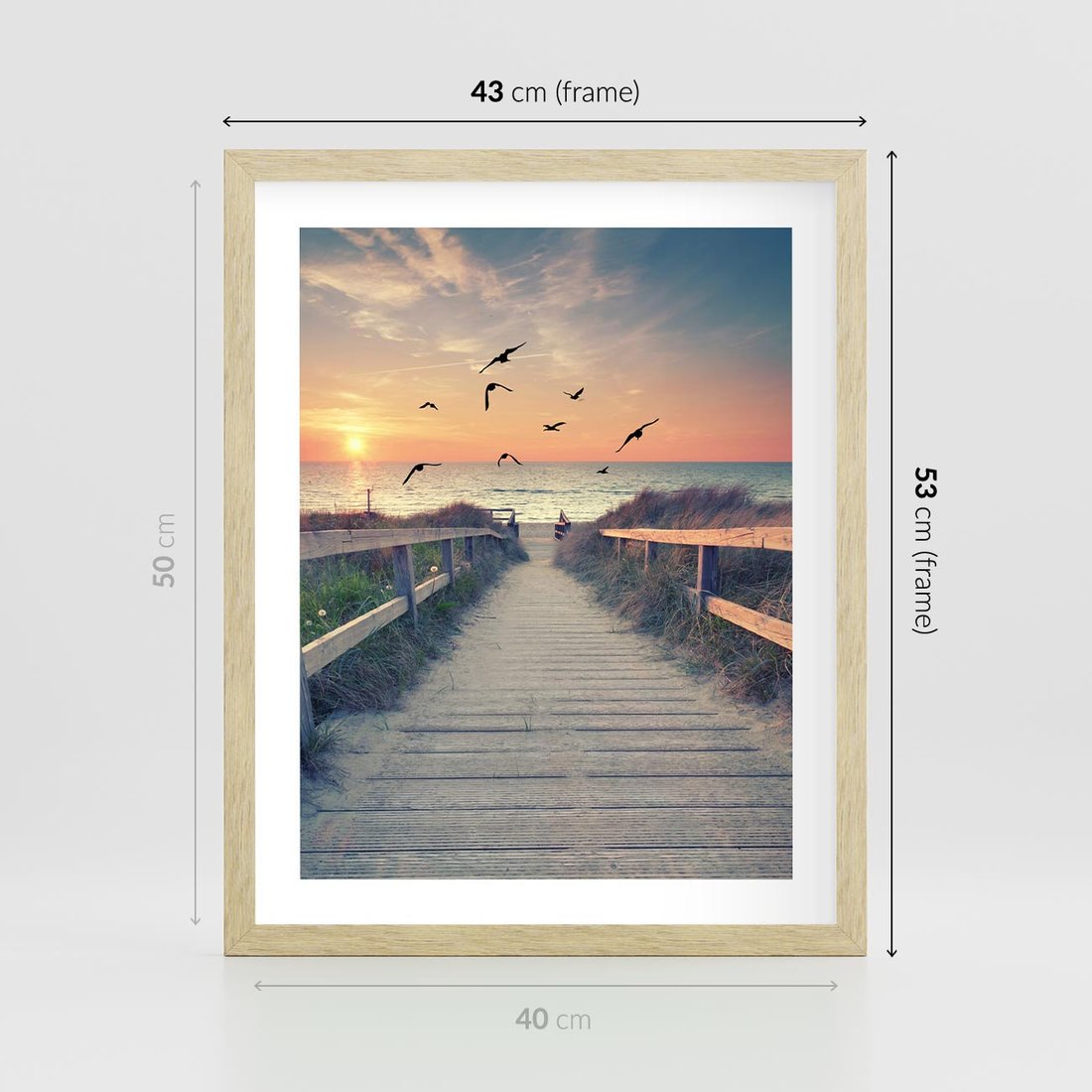 Plakat w ramie 40x50 - Sielanka nad brzegiem - plaża, pomost - rama drewno