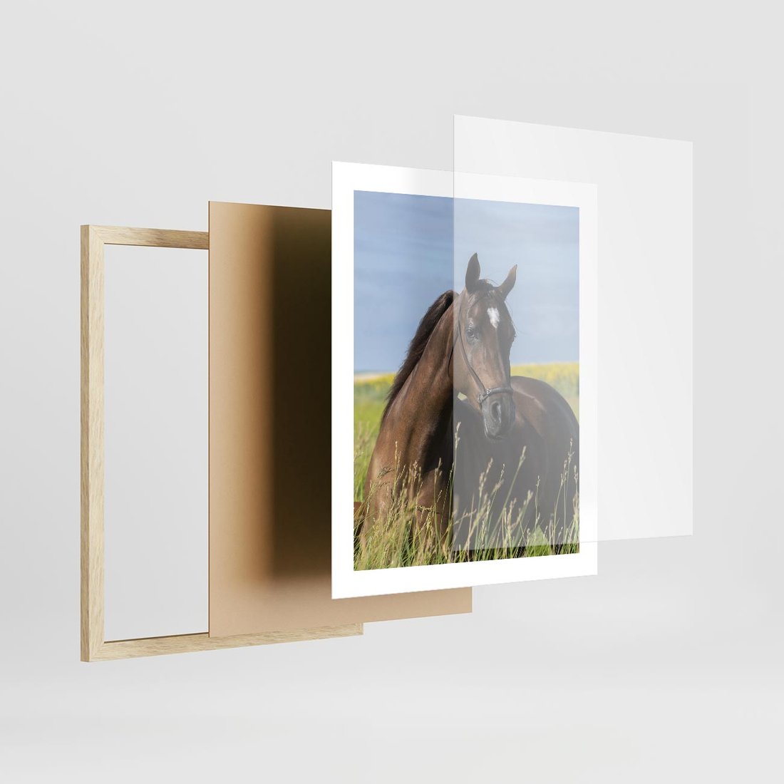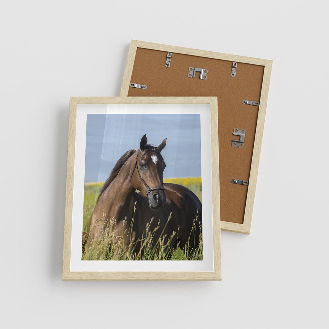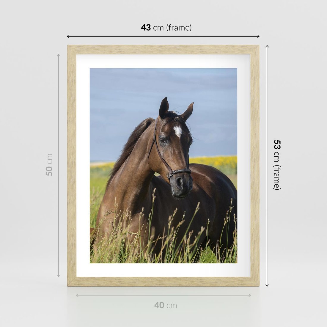 Plakat w ramie 40x50 - Siła i piękno natury - koń, łąka - rama drewno