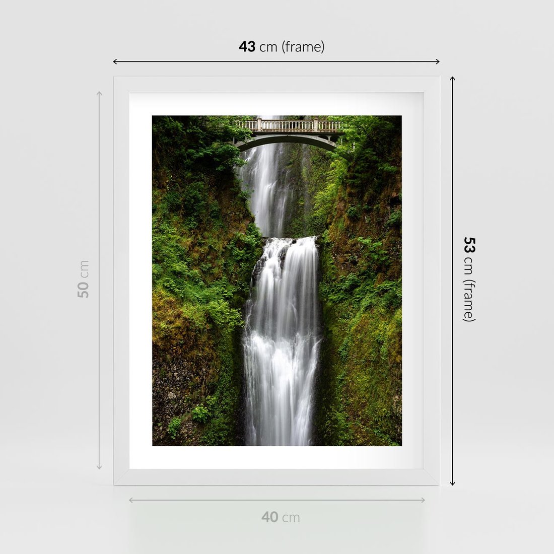 Plakat w ramie 40x50 - Siła i Urok Natury - wodospad, las - rama biała