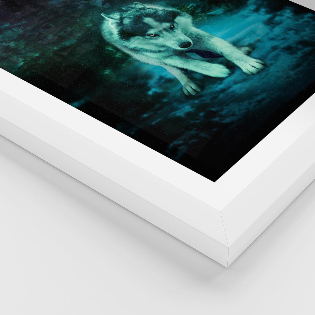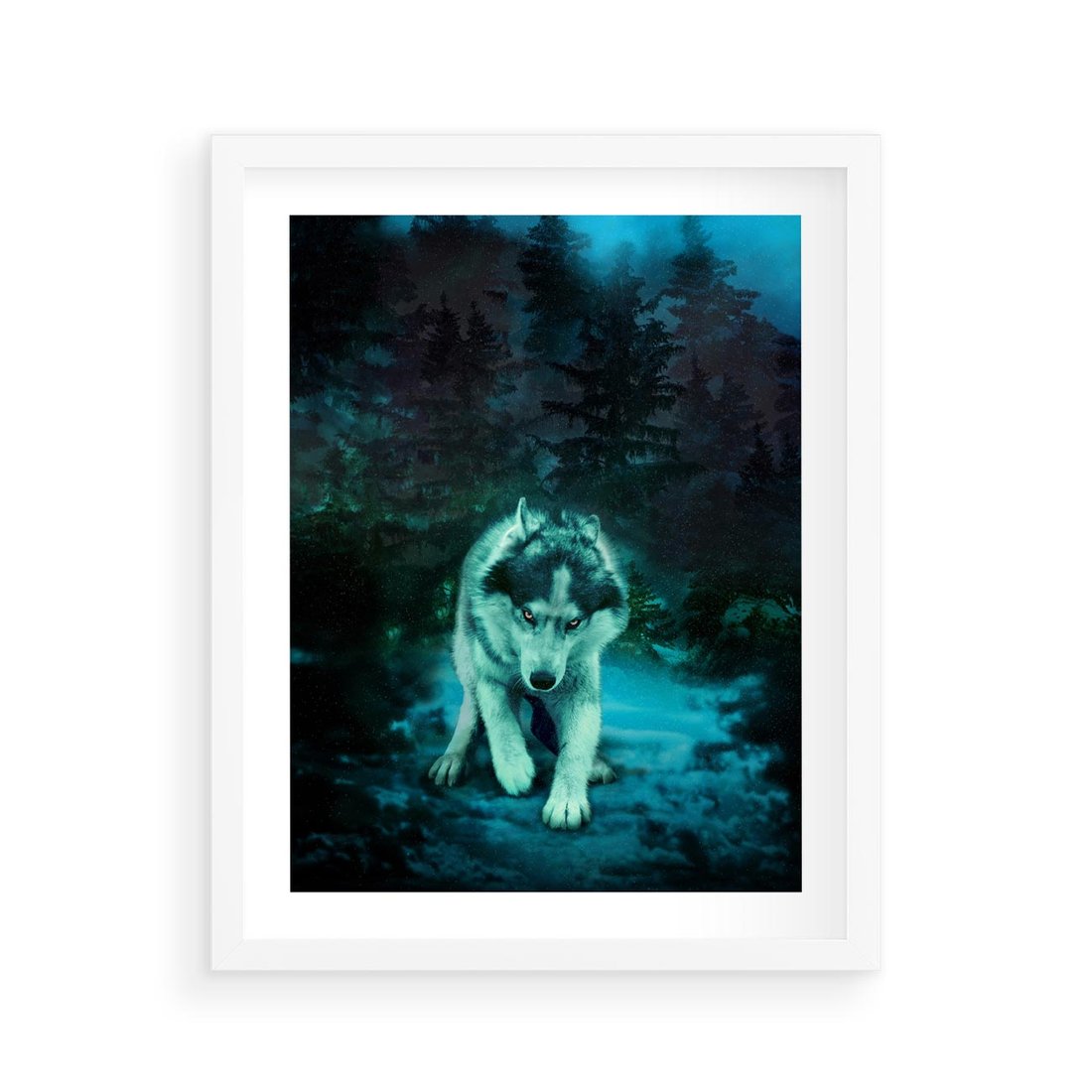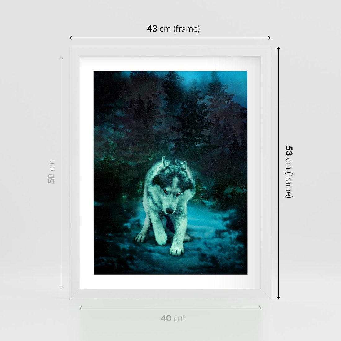 Plakat w ramie 40x50 - Siła i wdzięk natury - wilk, husky - rama biała