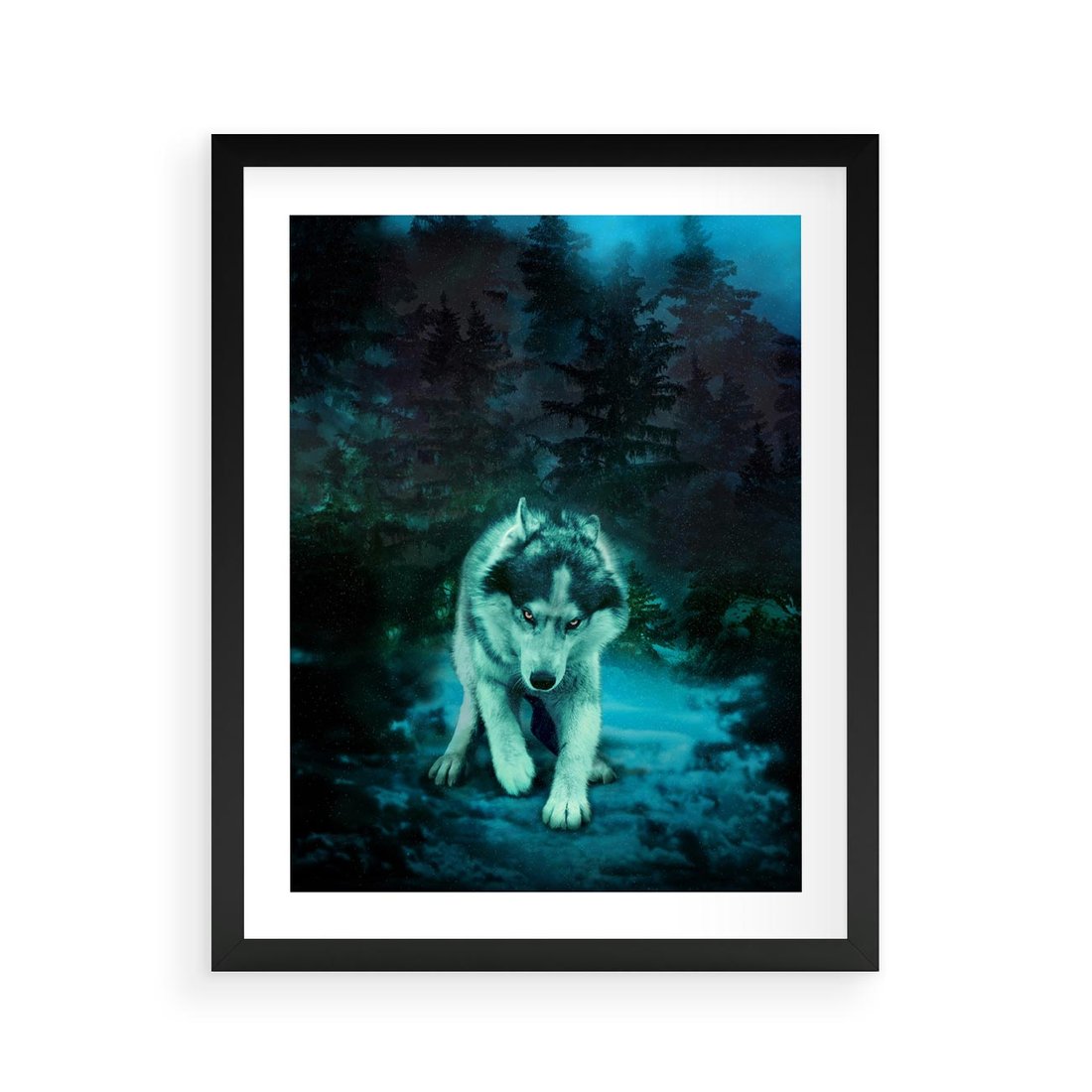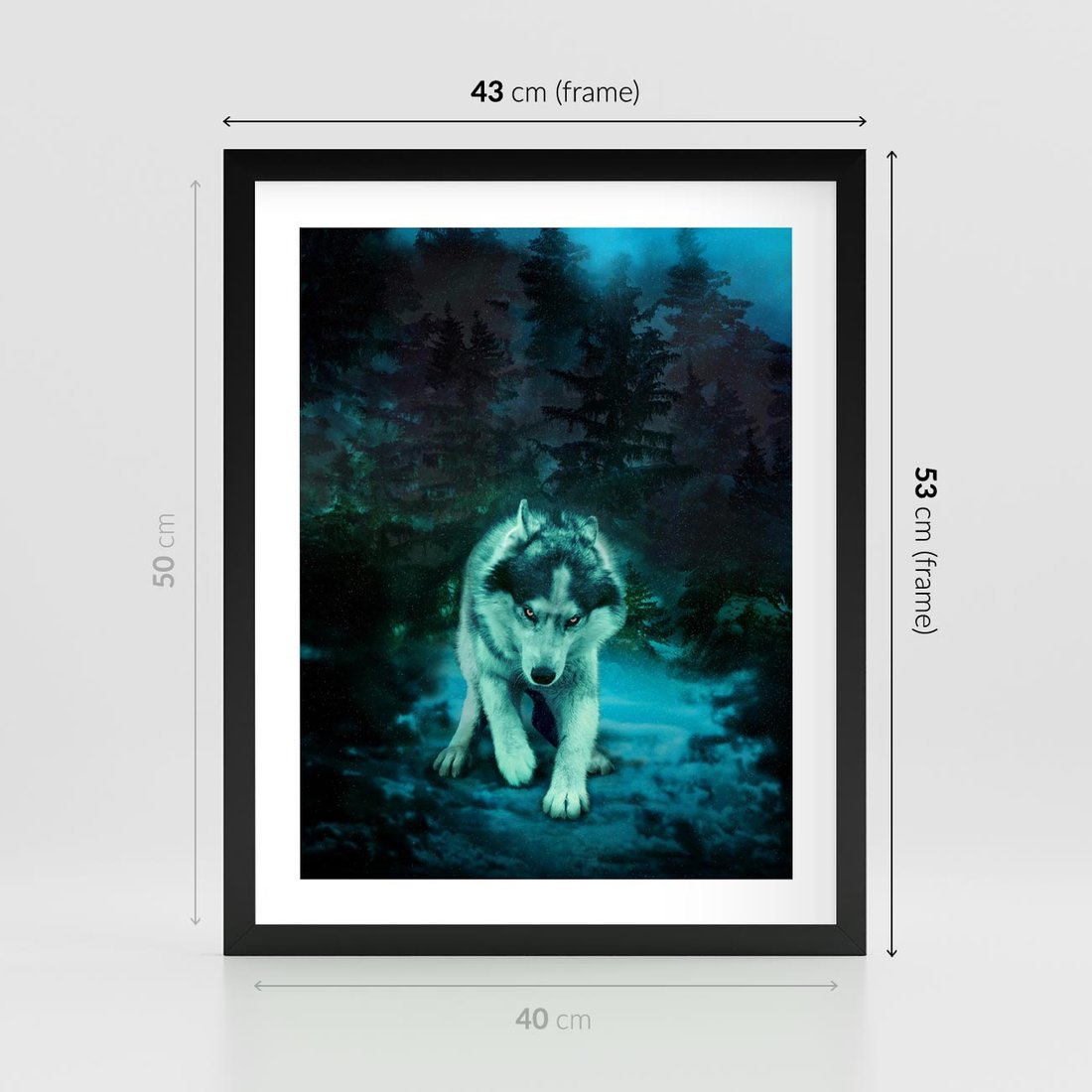 Plakat w ramie 40x50 - Siła i wdzięk natury - wilk, husky - rama czarna