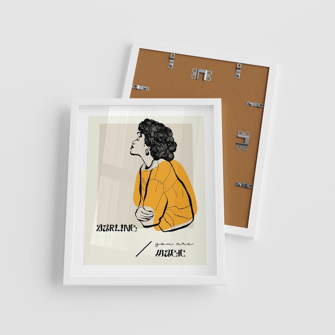 Plakat w ramie 40x50 - Siła Kobiety: Plakat ze Szkicem - kobieca grafika, plakat - rama biała