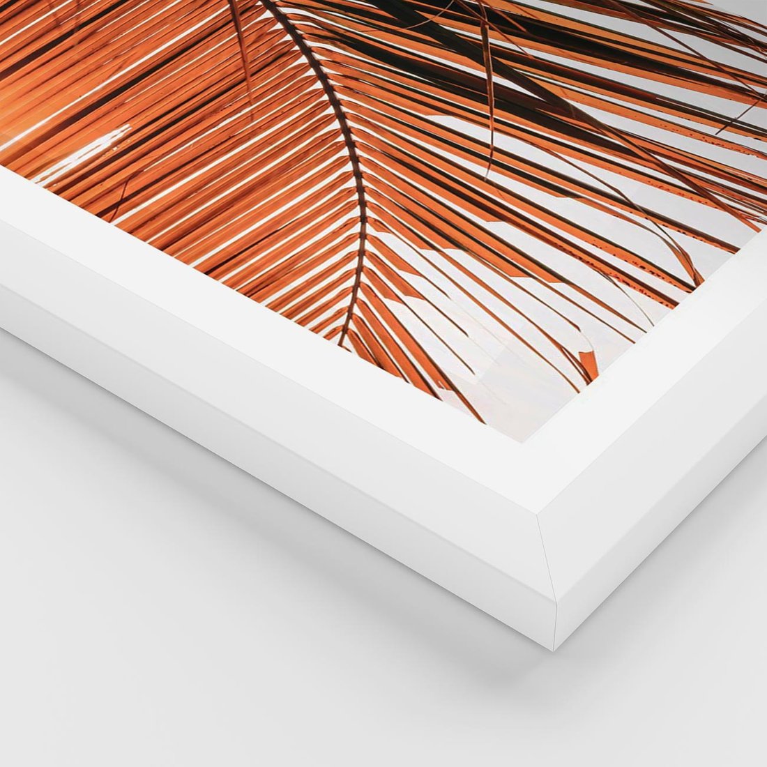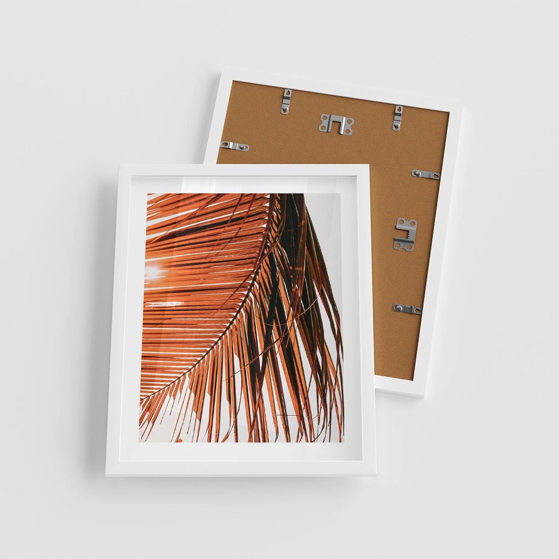 Plakat w ramie 40x50 - Słońce na Palmie - palma, promienie słońca - rama biała