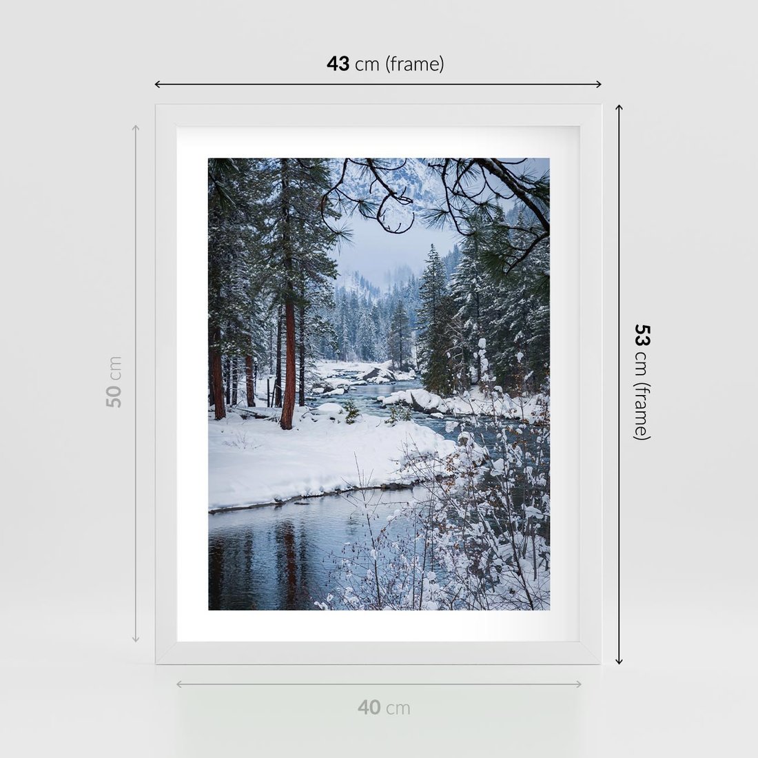 Plakat w ramie 40x50 - Śnieżne cuda - zima, las - rama biała