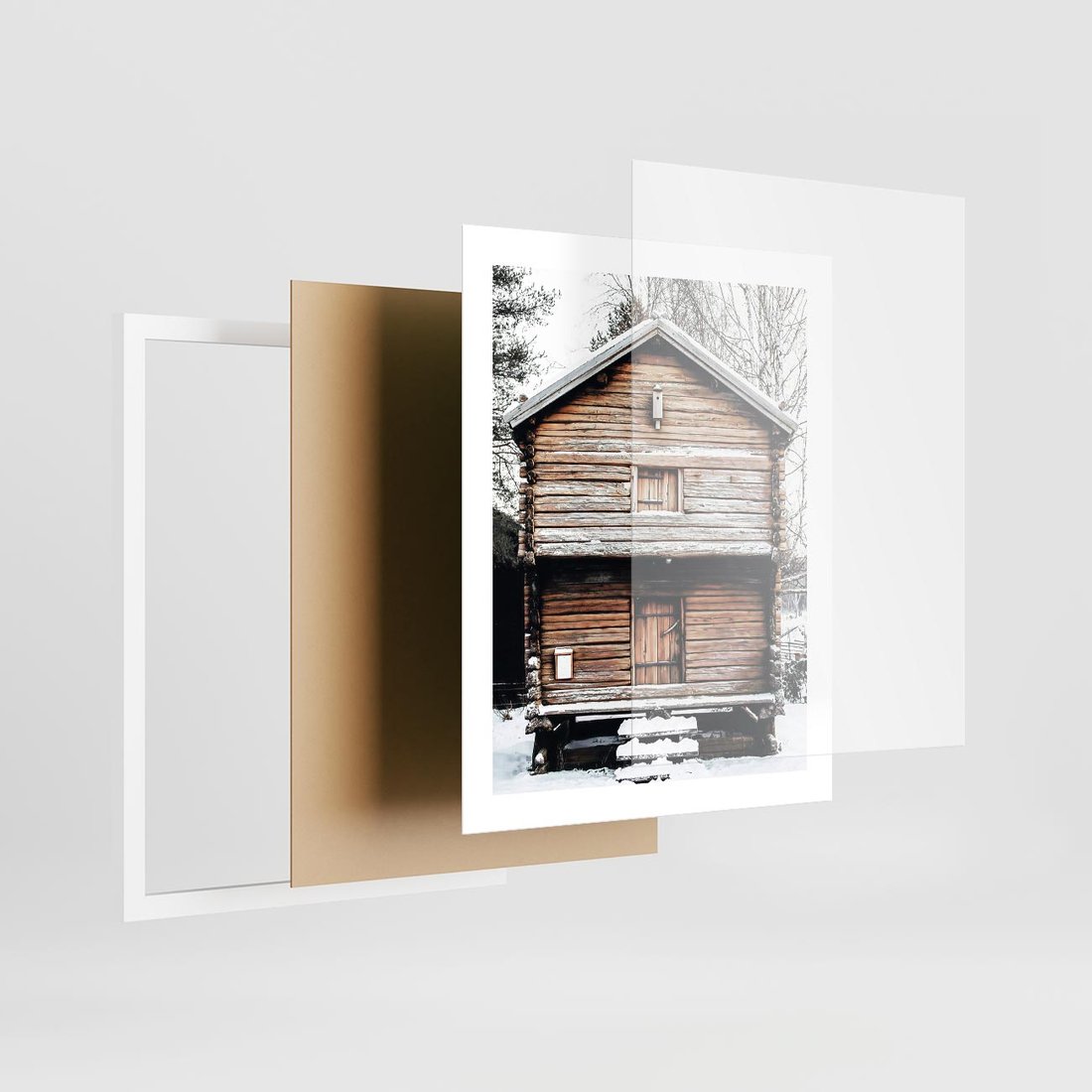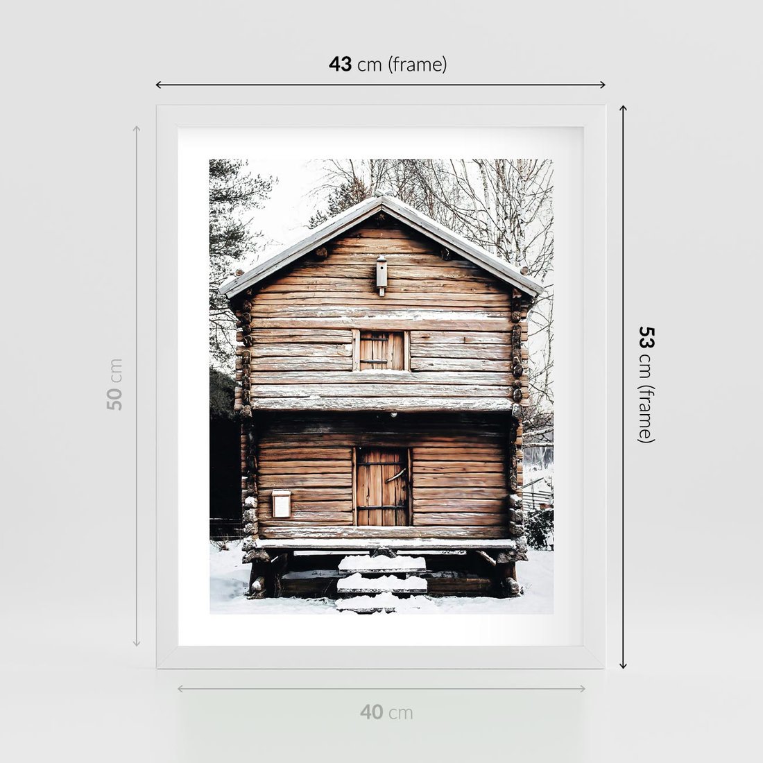 Plakat w ramie 40x50 - Śnieżny Ustronny Raj - domek w górach, śnieg - rama biała