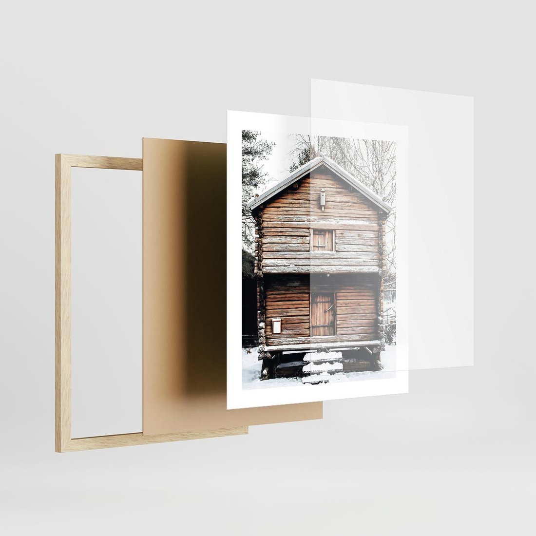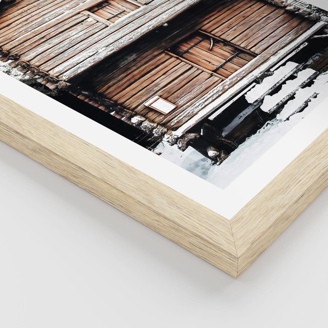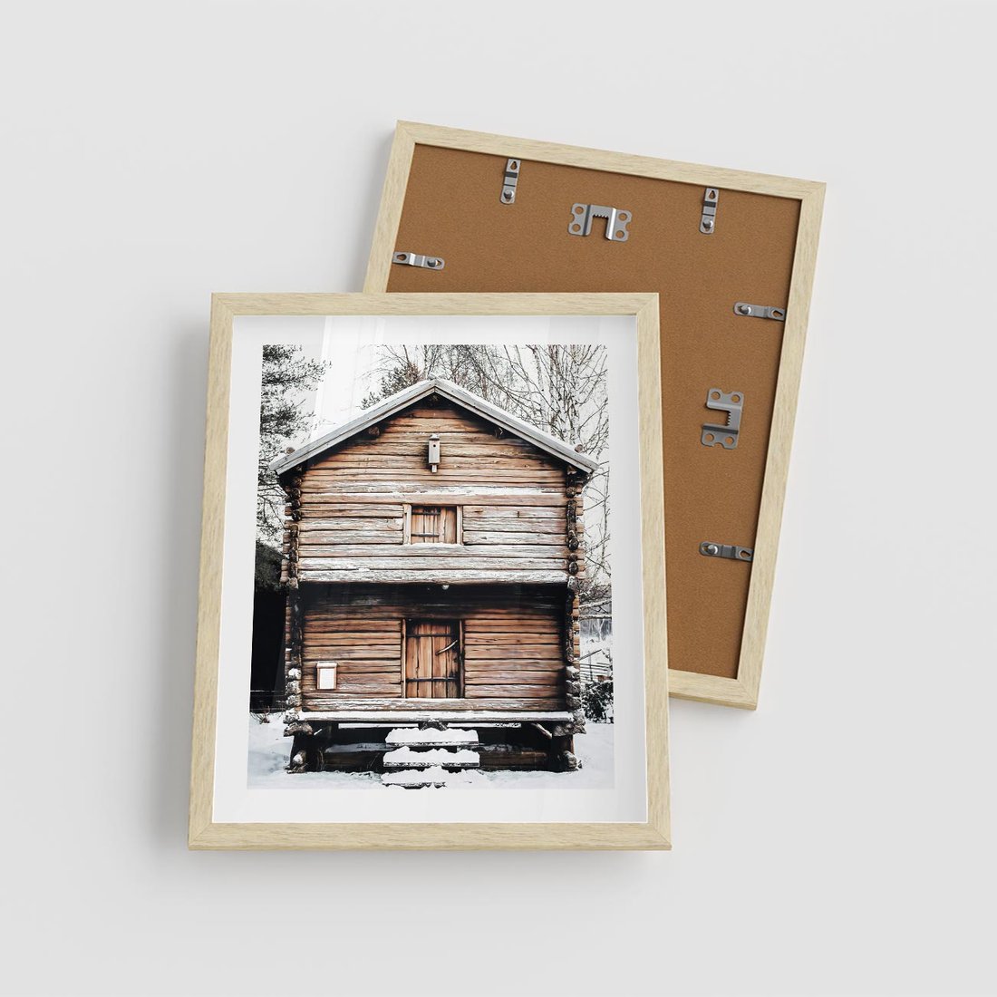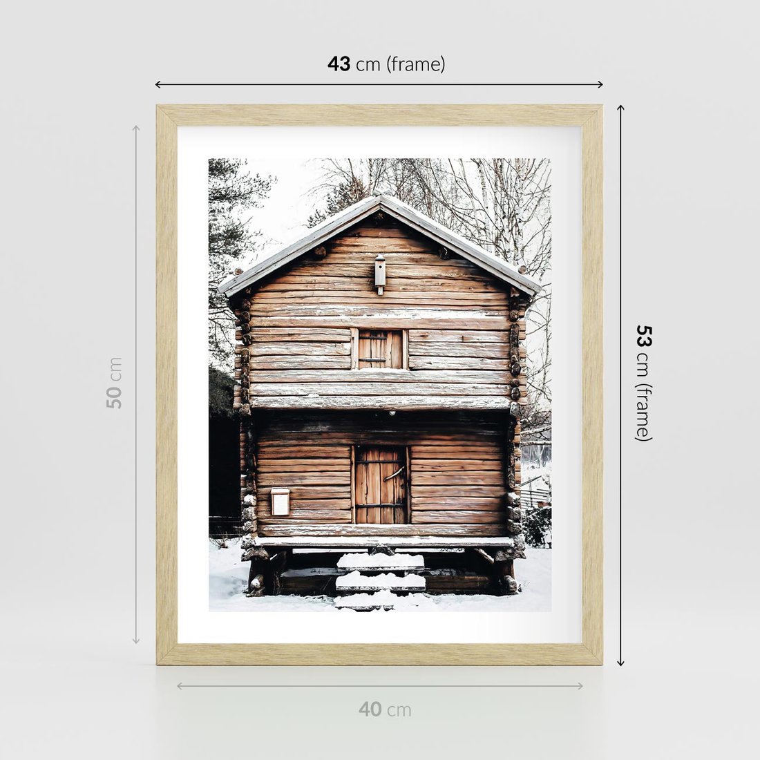 Plakat w ramie 40x50 - Śnieżny Ustronny Raj - domek w górach, śnieg - rama drewno